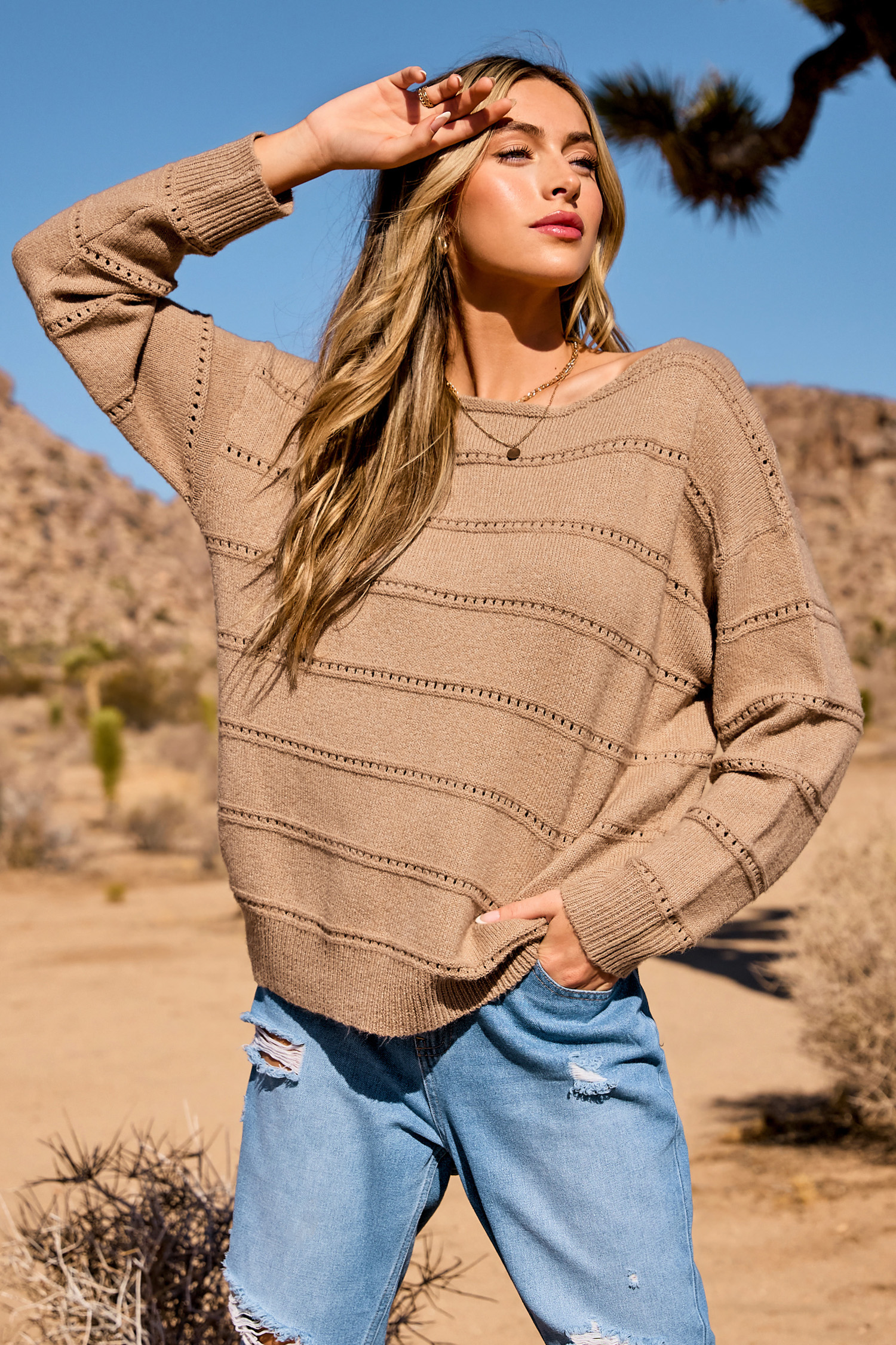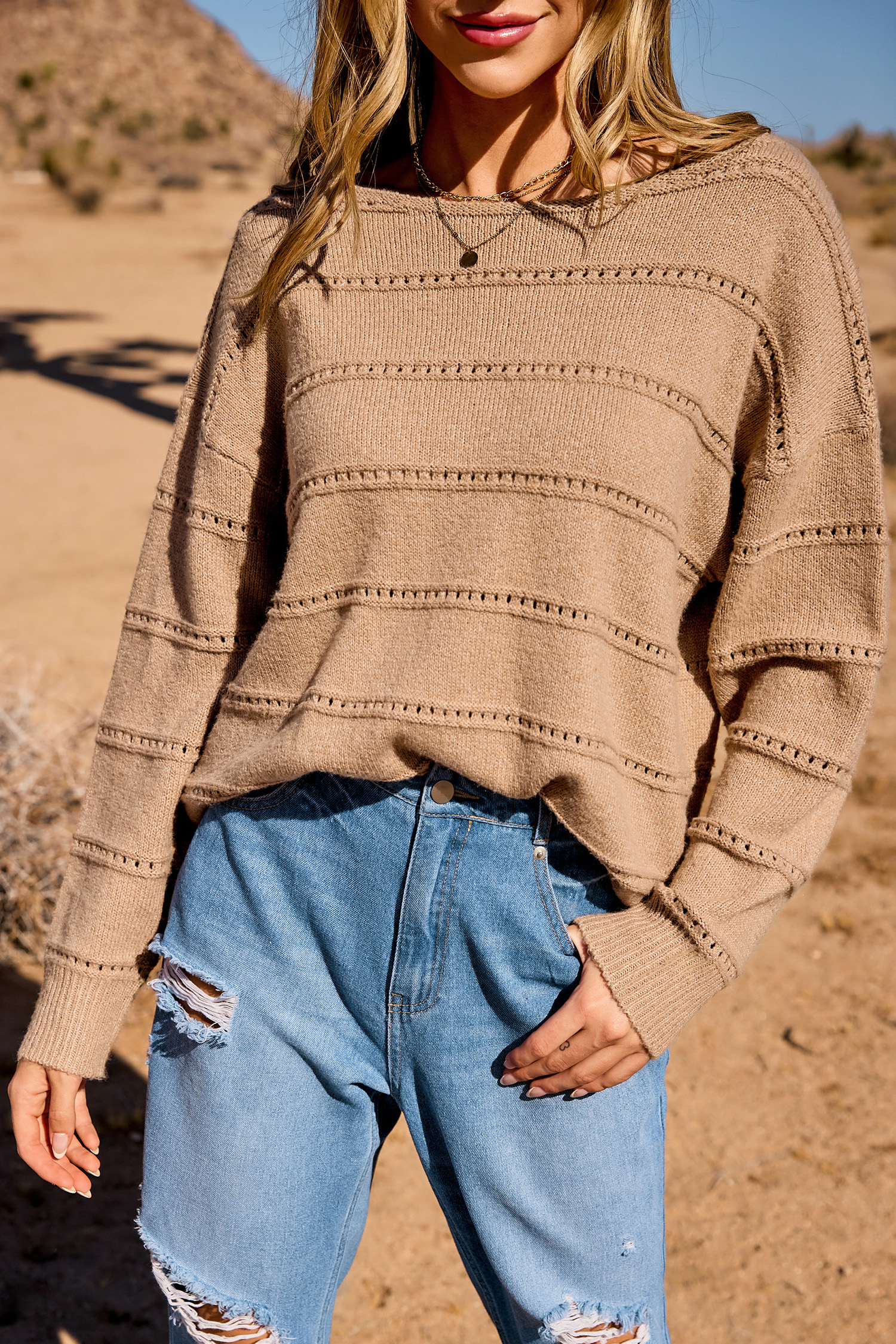 Braunes langärmeliges Pullover mit Rundhalsausschnitt