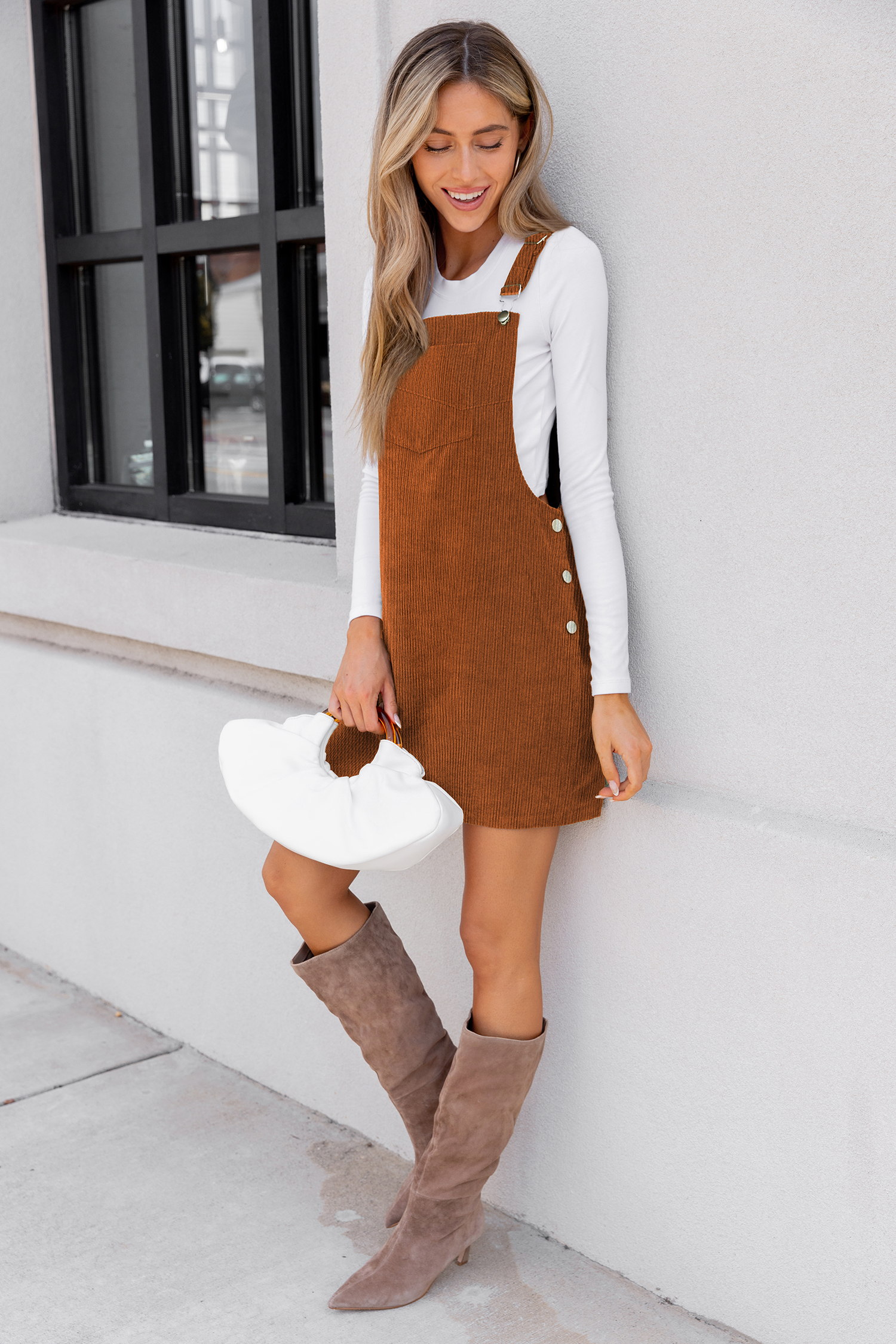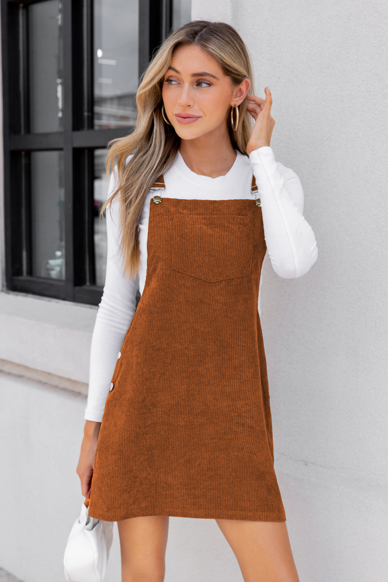 Braunes Cord-Latzkleid mit quadratischem Ausschnitt