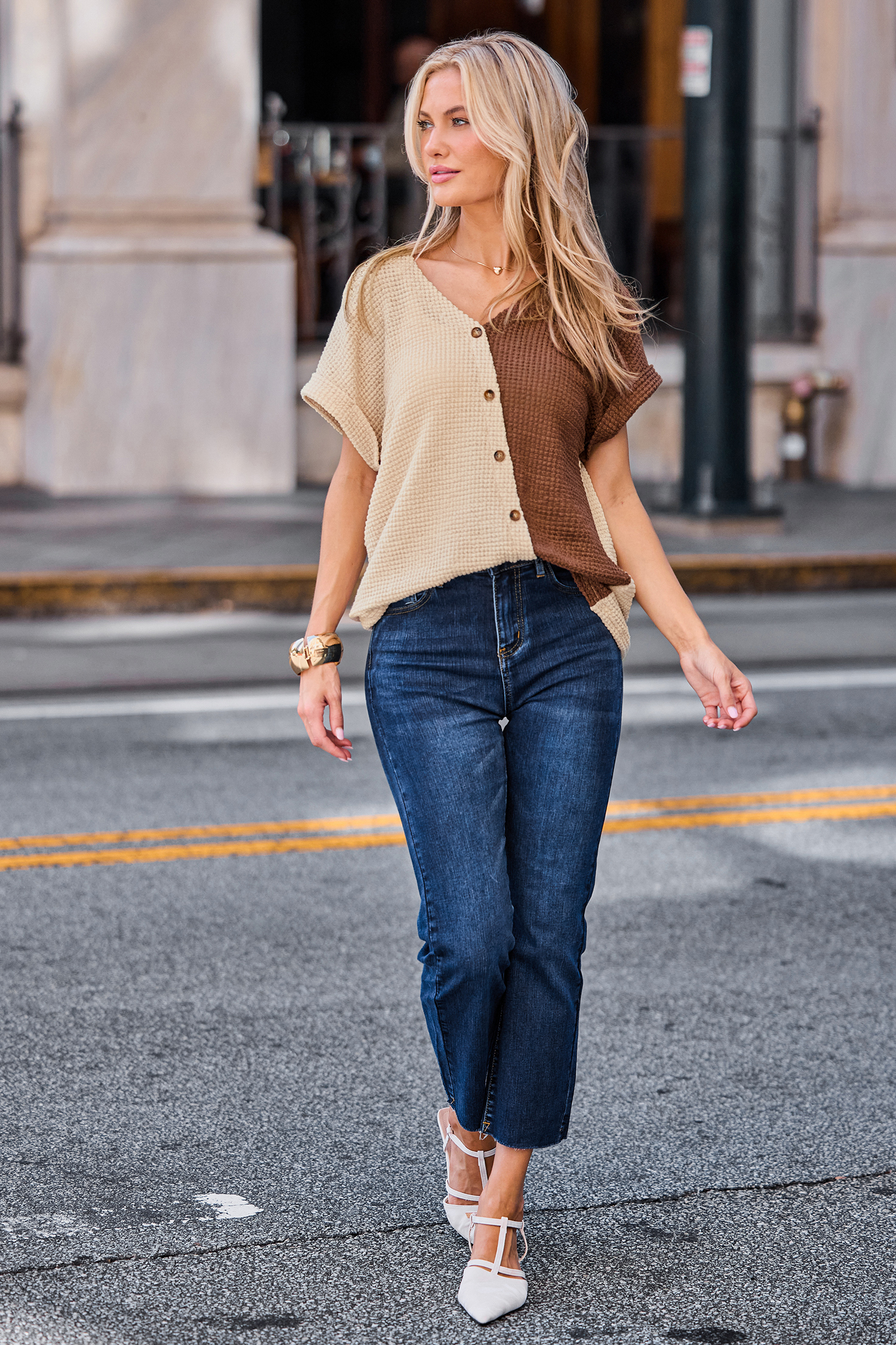 Das Oberteil wurde für entspannte Vibes mit einem Hauch von Stil entworfen! Mit seinem V-Ausschnitt, den kurzen Ärmeln und der Knopfleiste vorne ist es perfekt für lässige Alltagslooks.