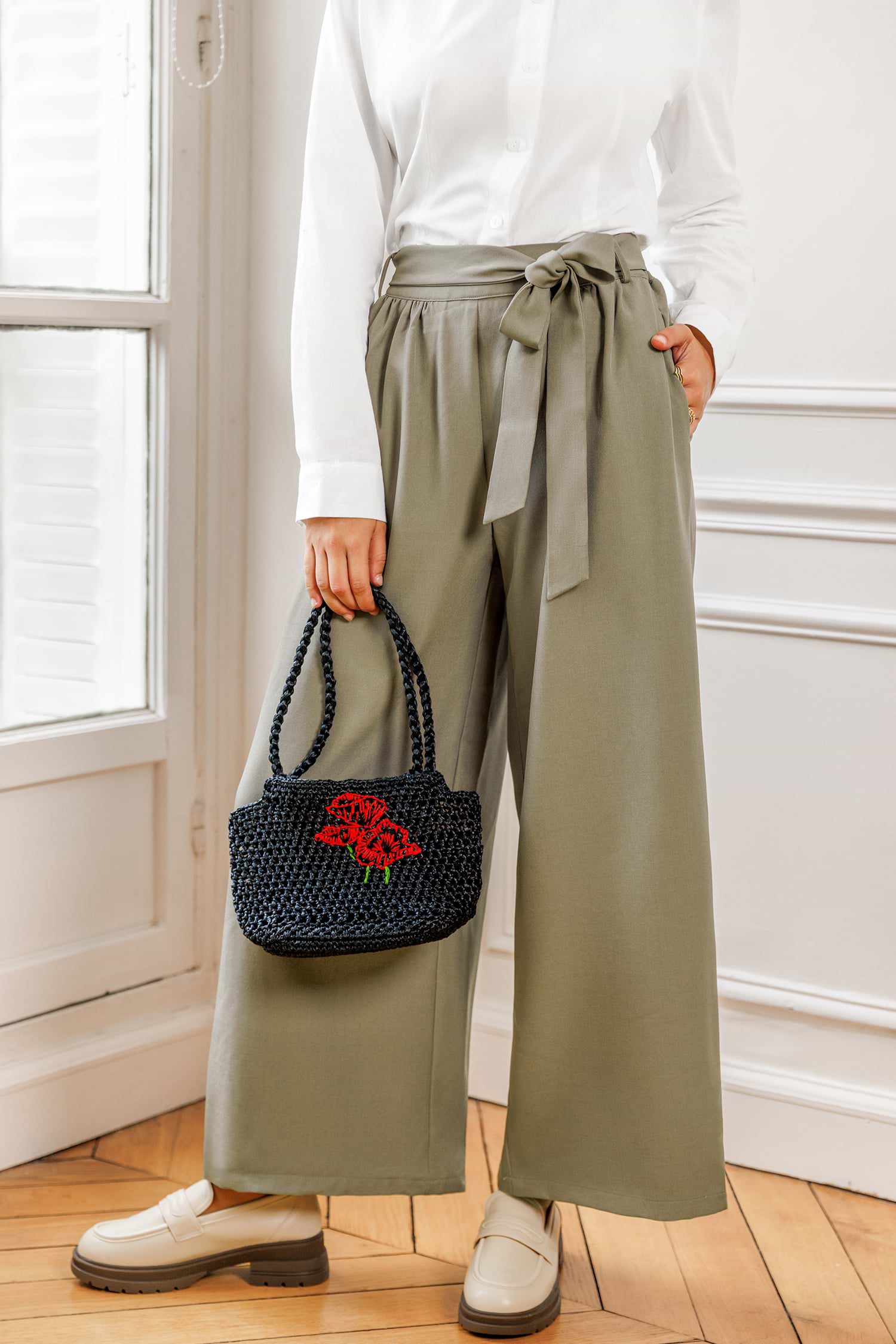 Die graue Hose ist mühelos schick und perfekt für die Stadt! Dank des Taillengürtels, der Falten vorne und des weiten Beins ist sie ideal für jeden Anlass – vom morgendlichen Kaffee bis zum Abendessen.