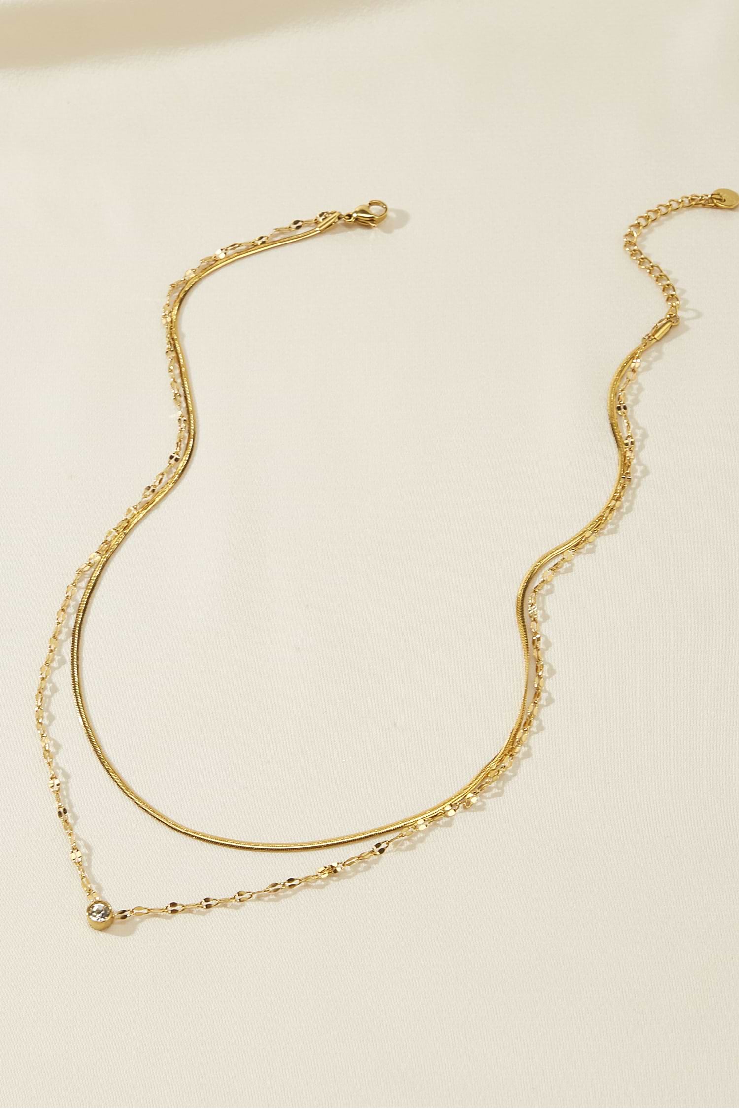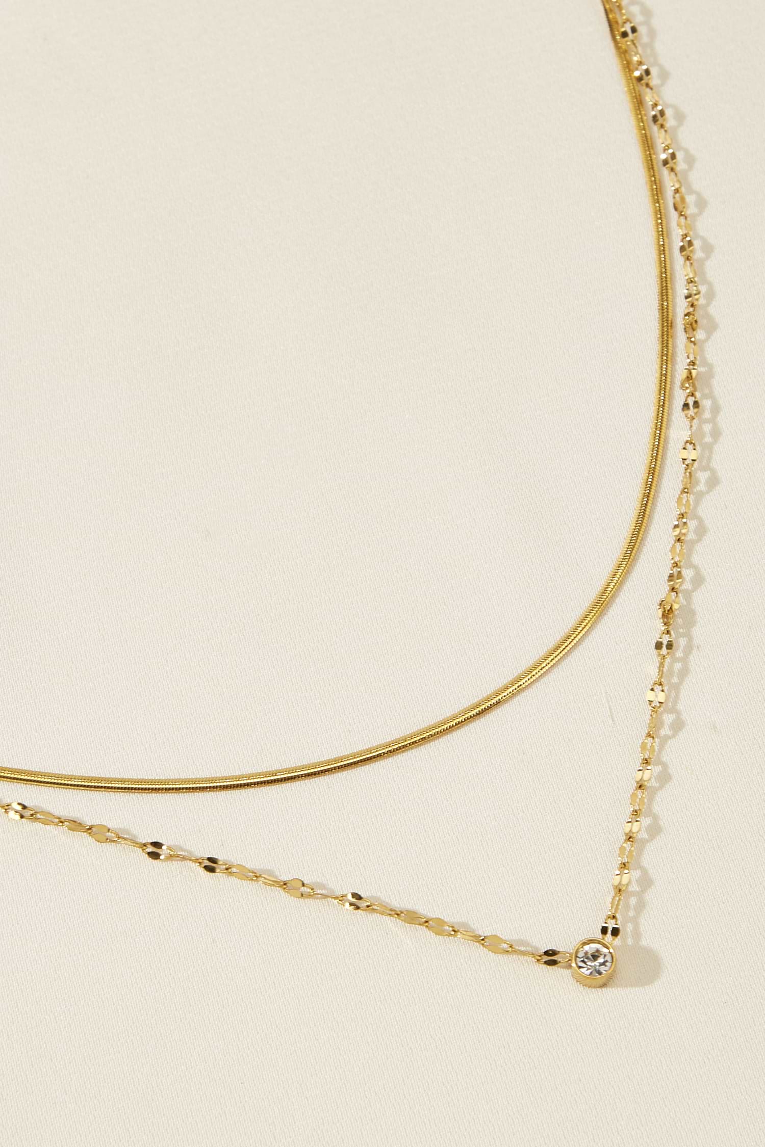 Die goldfarbene Halskette macht den Layering-Look zum Kinderspiel! Mit verschiedenen Ketten und verstellbarer Passform ist sie genau das richtige Schmuckstück für jeden Tag.