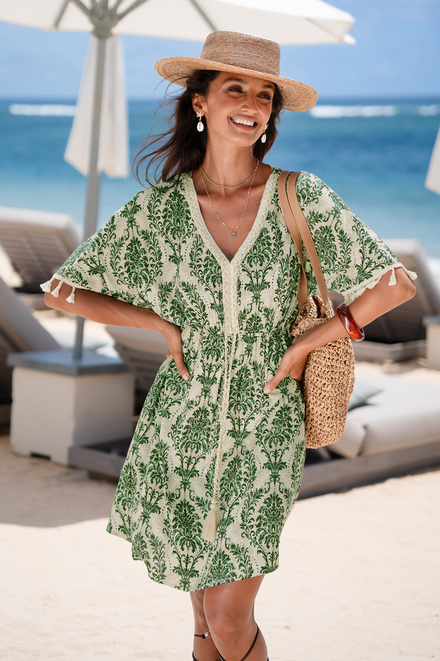 Boho-Minikleid mit Quastenbesatz