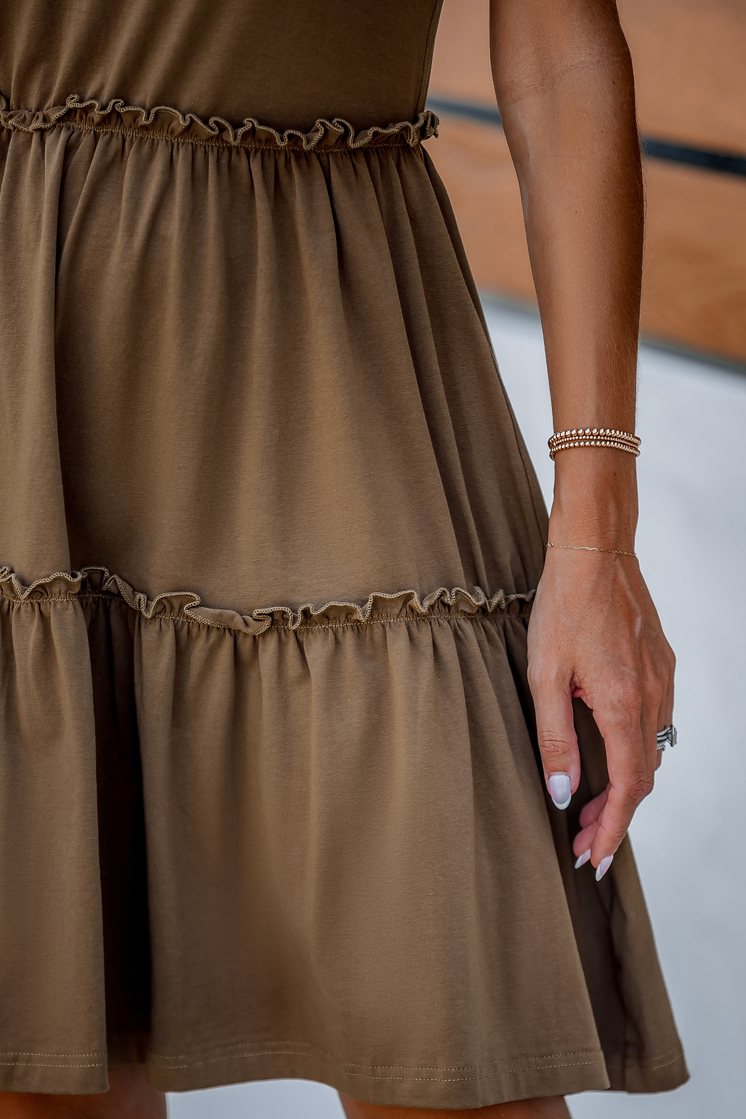 Kaffeebraunes ärmelloses Minikleid mit V-Ausschnitt