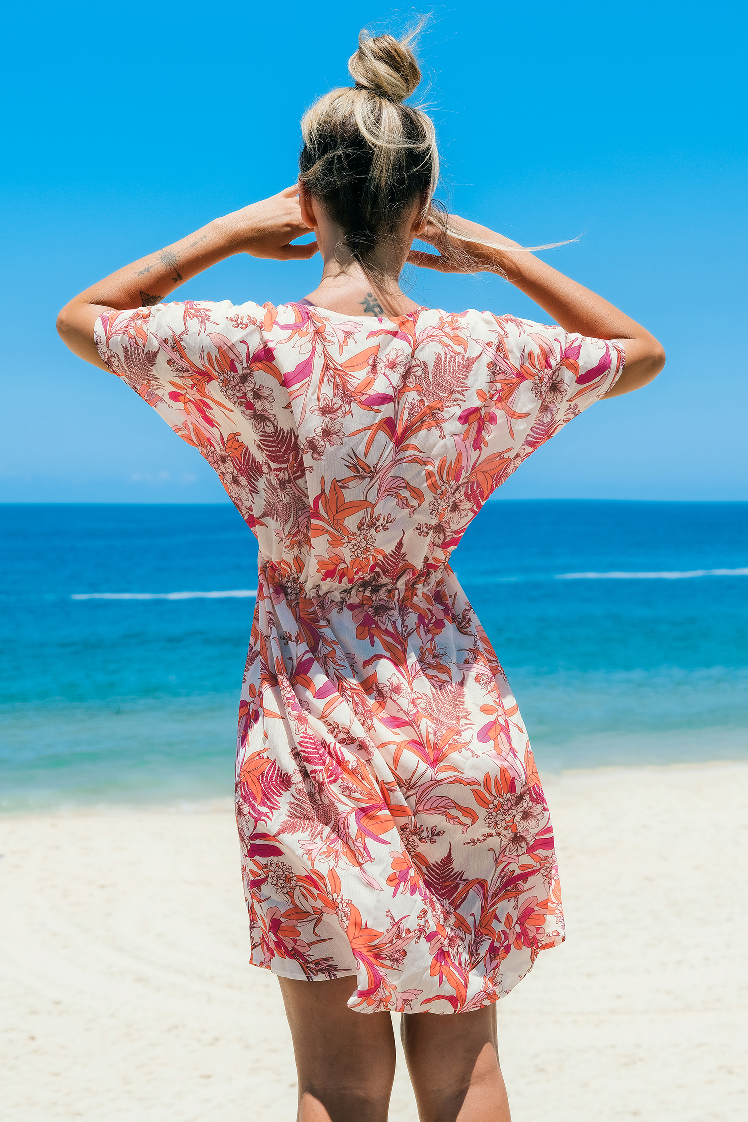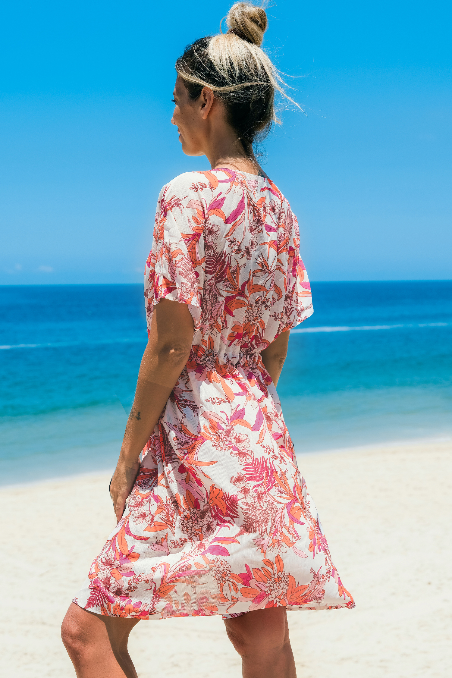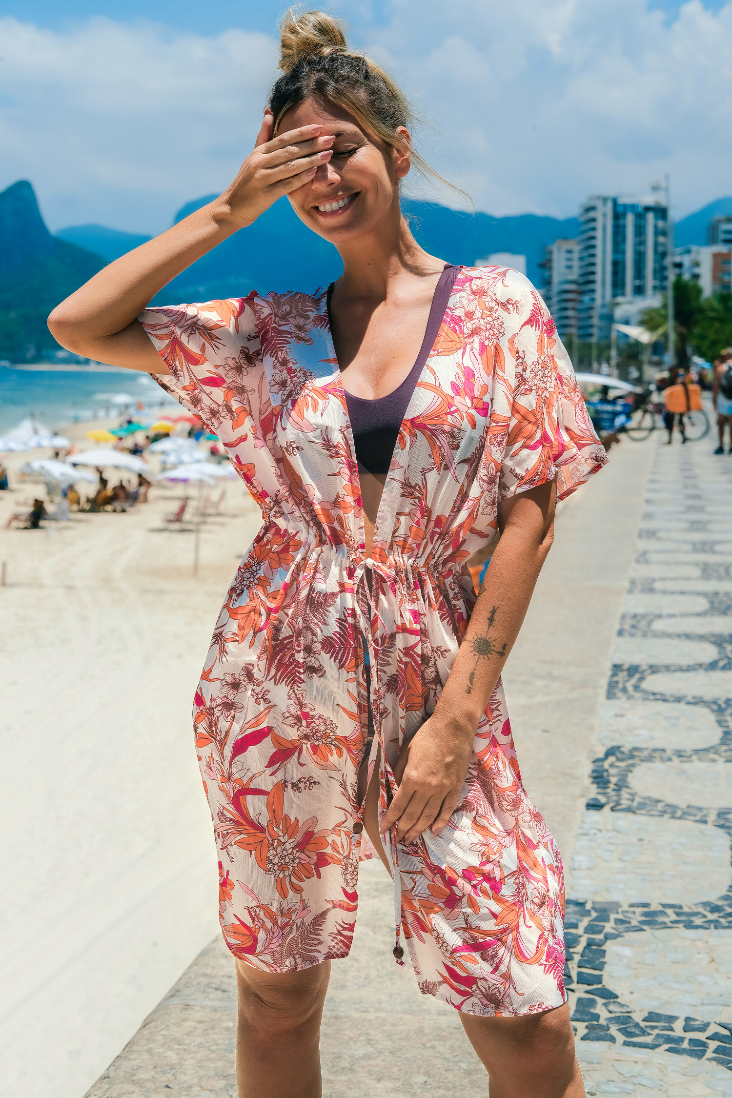 Korallenrotes tropisches Cover-Up-Top mit offener Vorderseite