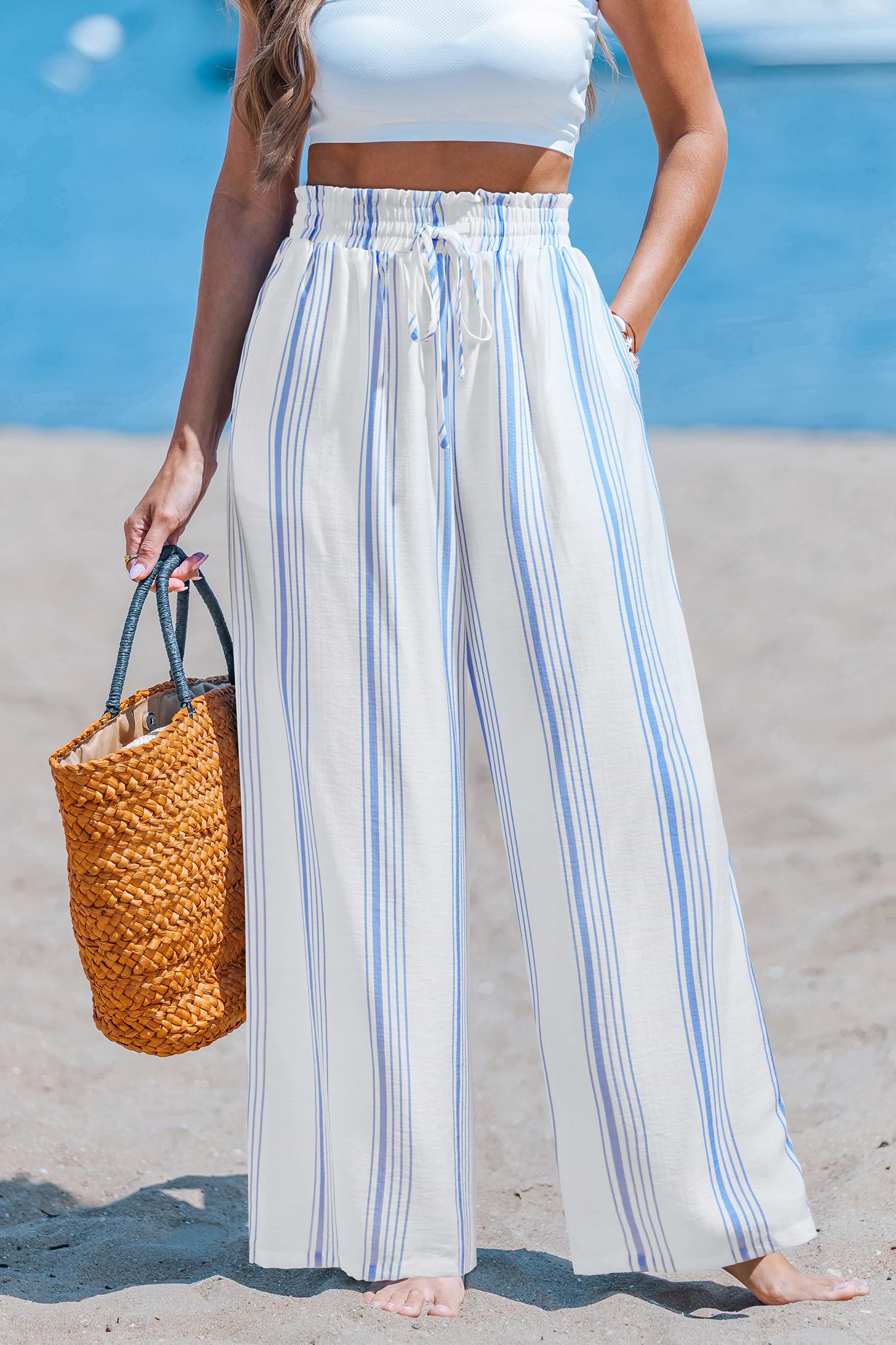 Die gestreiften Hosen verleihen Ihrem Tag ein luftiges Upgrade! Der Kordelzug im Bund, die praktischen Taschen und die weiten Beine sorgen für einen lässigen Look, der dennoch gepflegt wirkt.