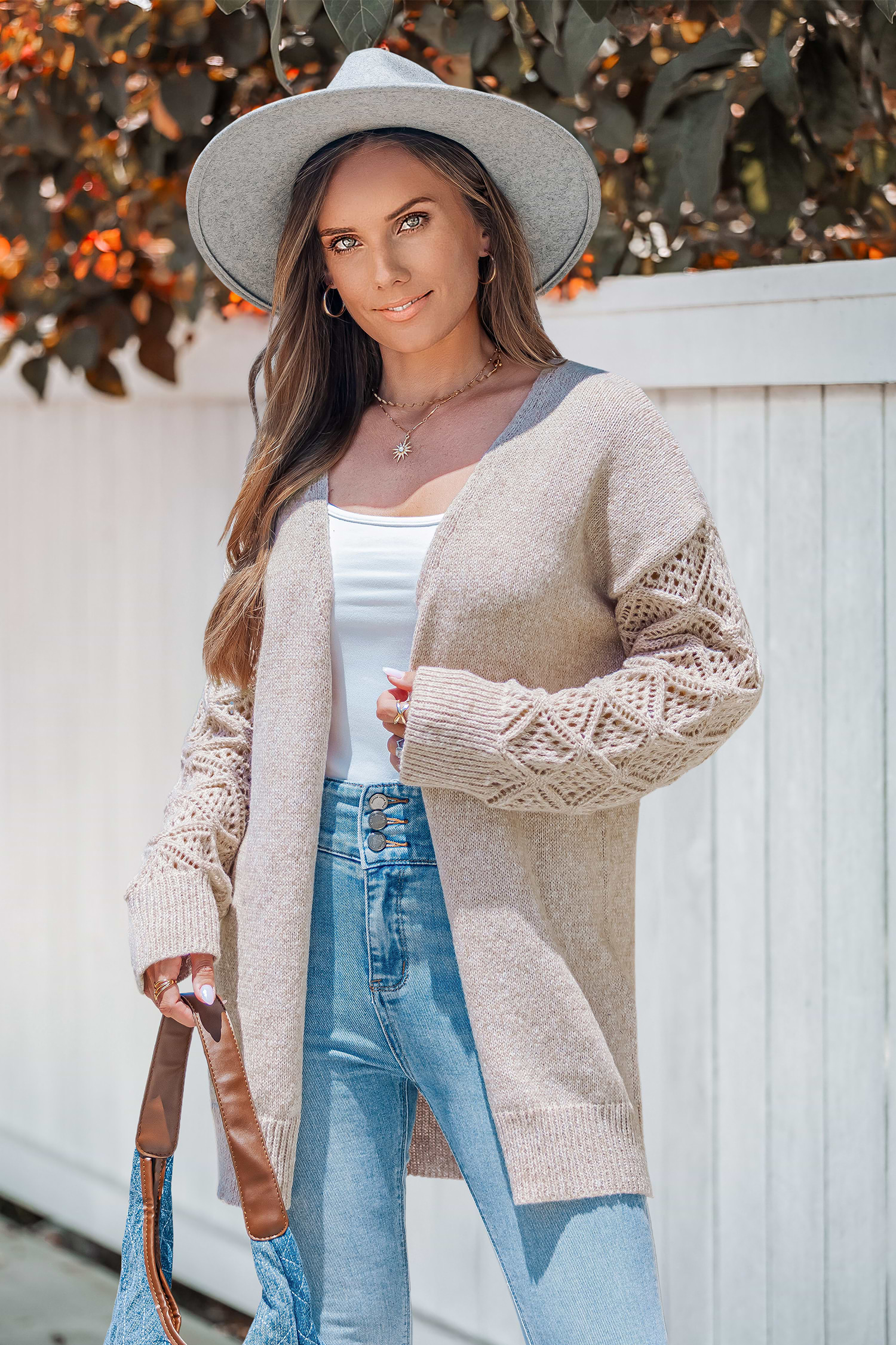 Der beigefarbene Cardigan ist der perfekte Begleiter für mühelosen Komfort und lässigen Style! Dank der offenen Vorderseite und den langen Ärmeln lässt er sich perfekt über jedes Outfit ziehen und sorgt für einen gemütlichen und schicken Look.