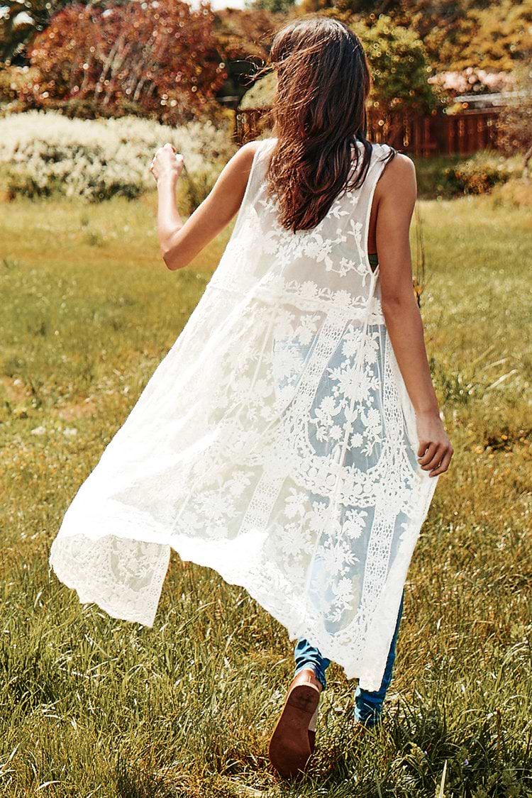 HomeCremeweißes ärmelloses Cover Up
