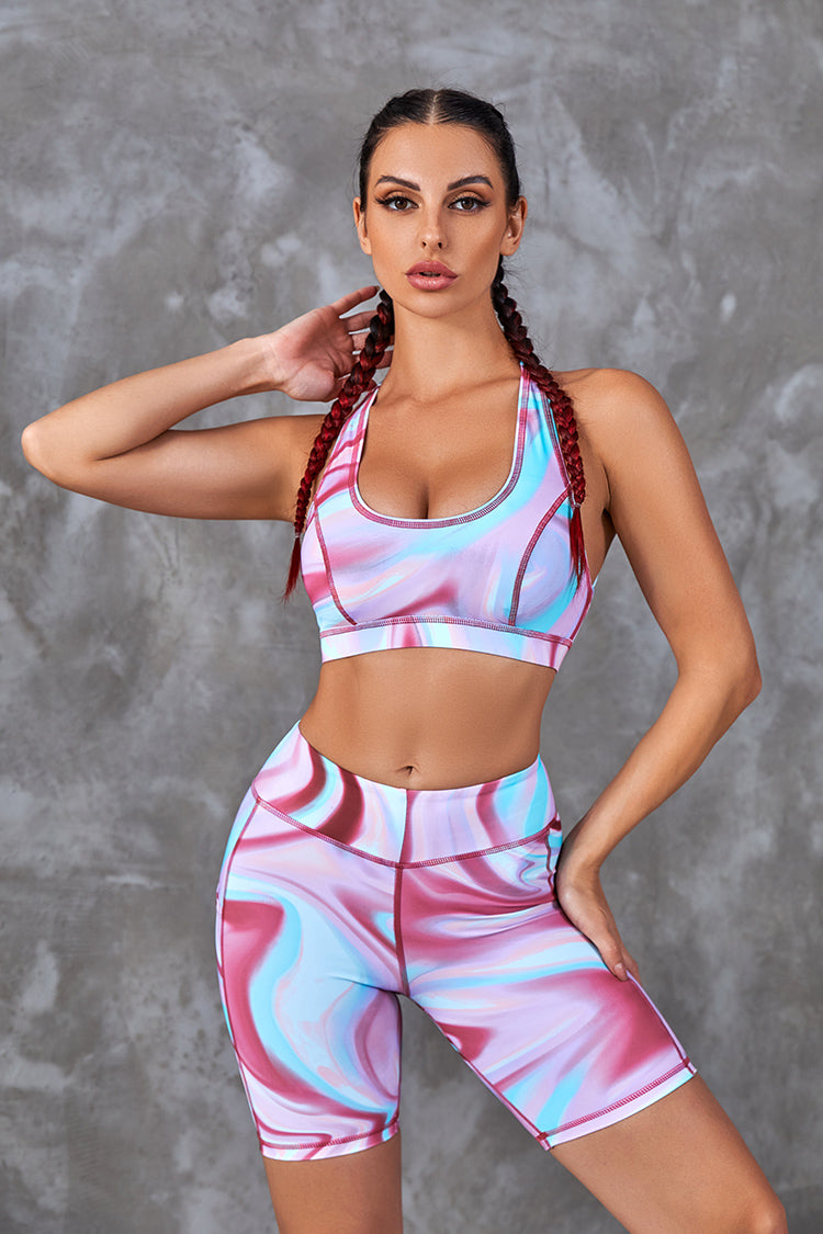 HomeCriss Cross Sport-BH mit Marmor-Muster