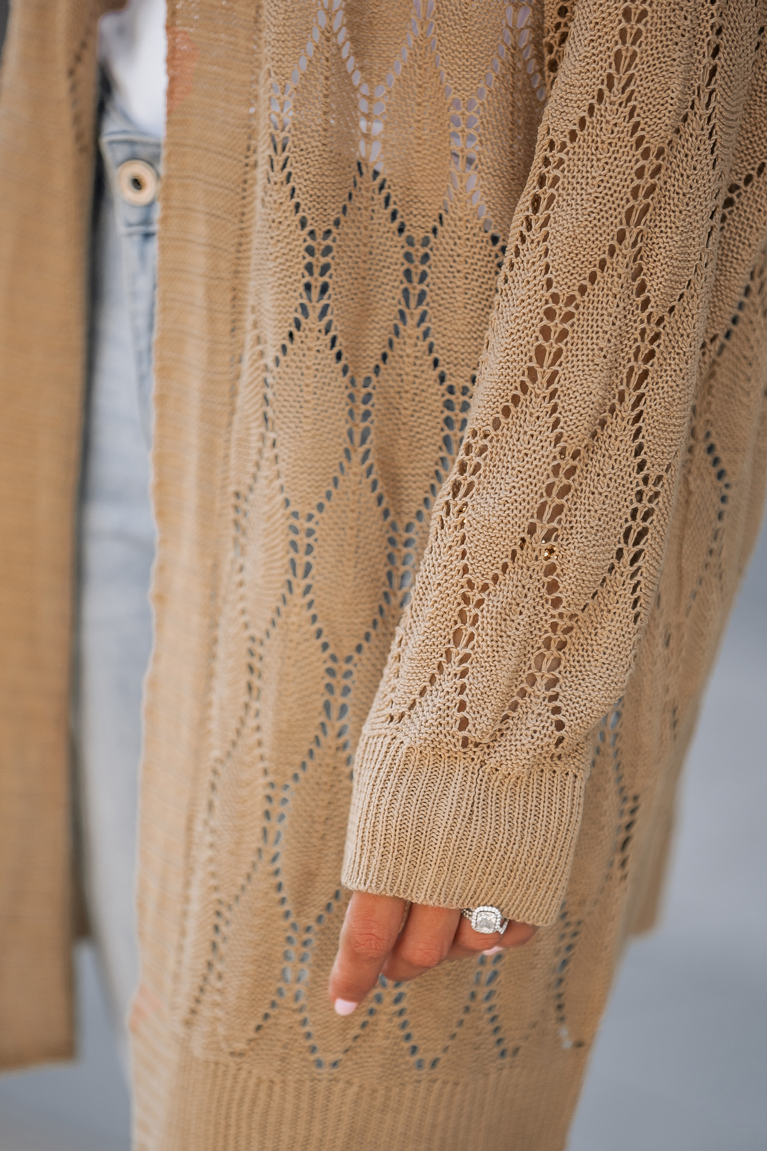 Cutout strukturierte Strickjacke mit offener Vorderseite