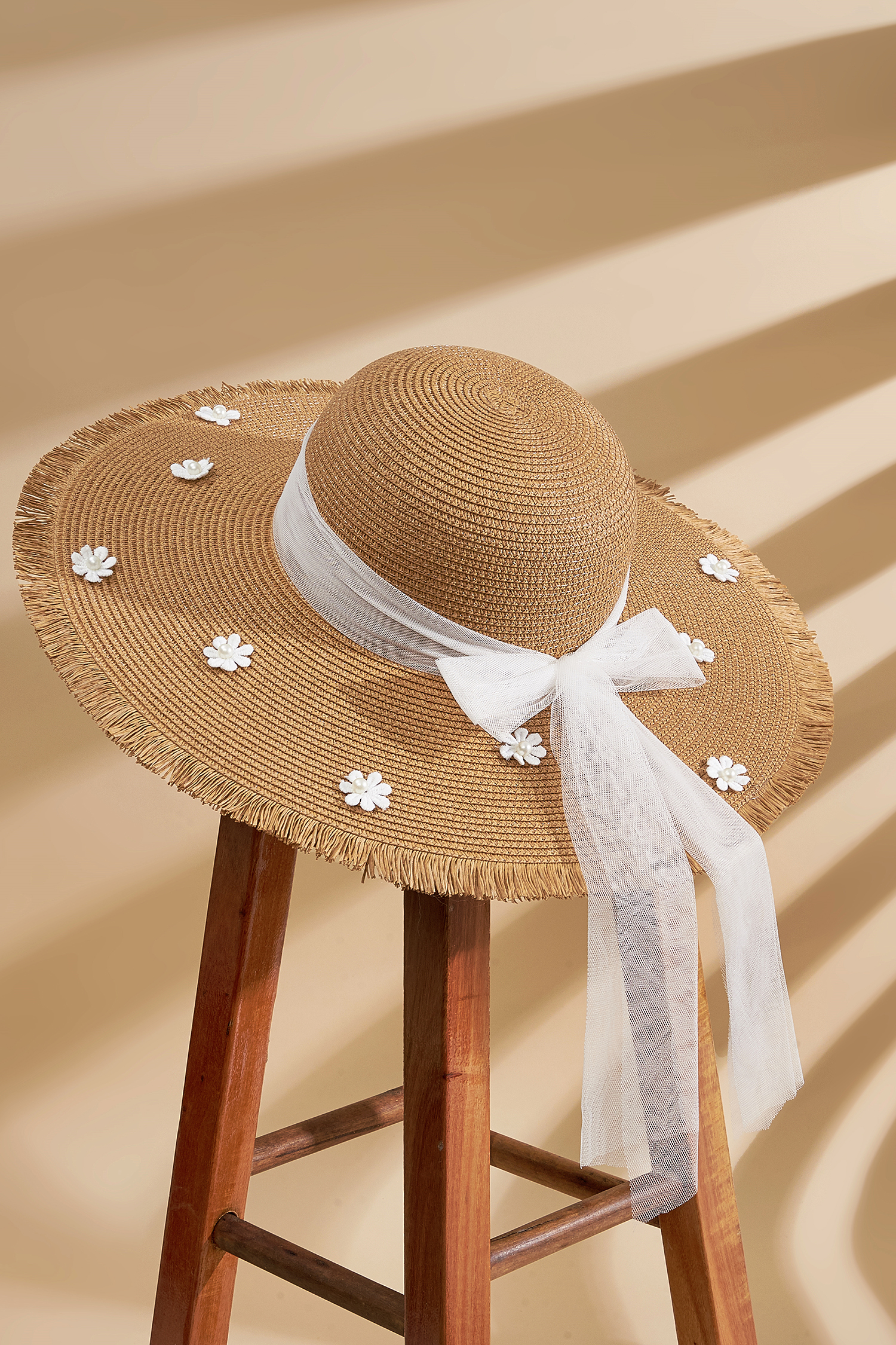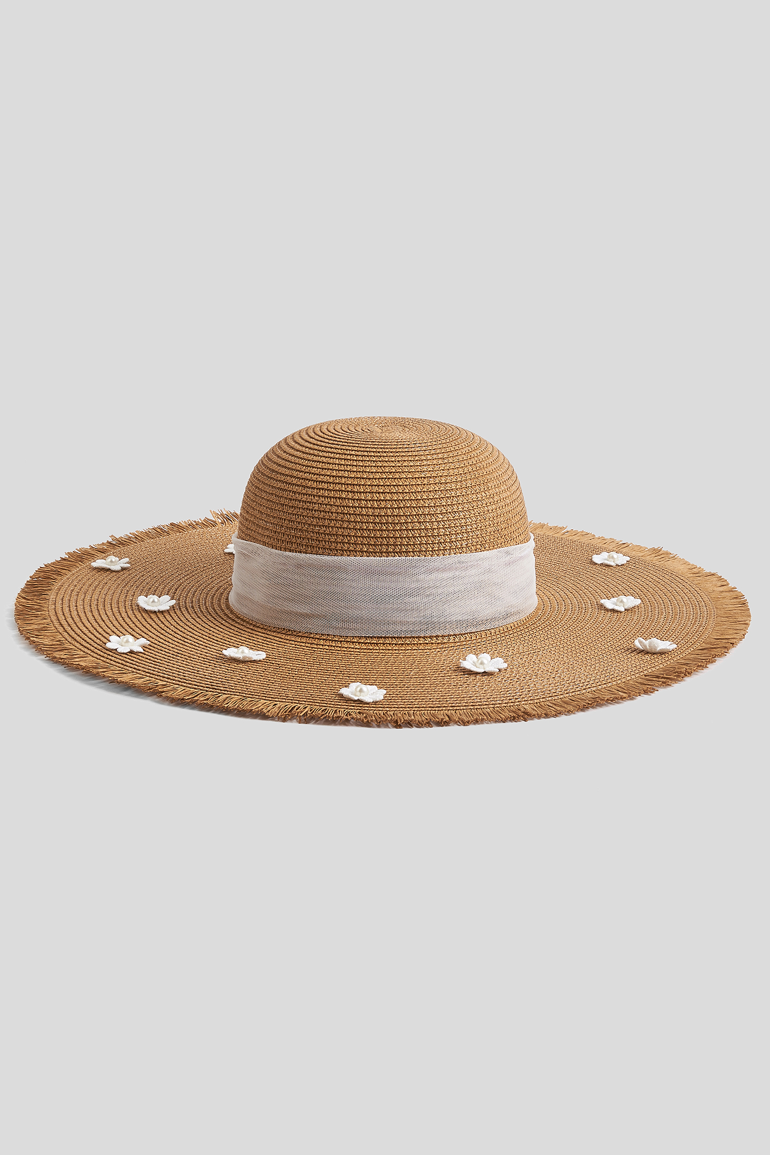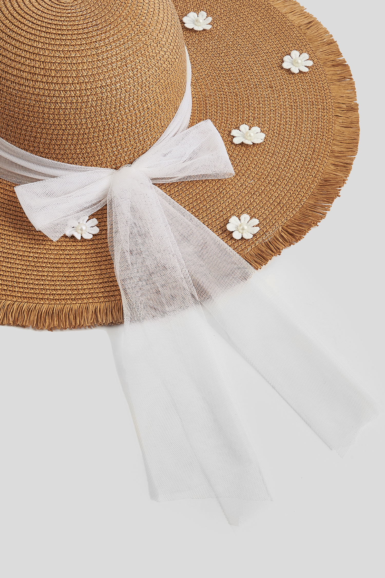 Strohhut mit weißem Band
