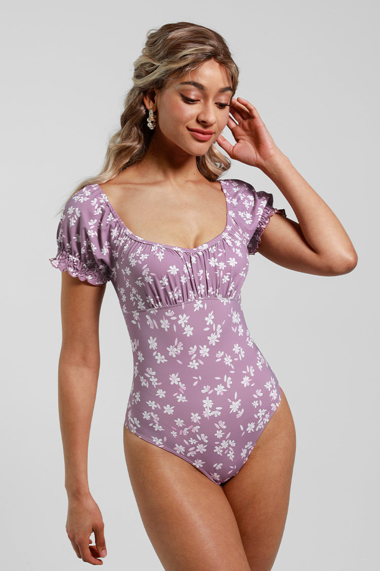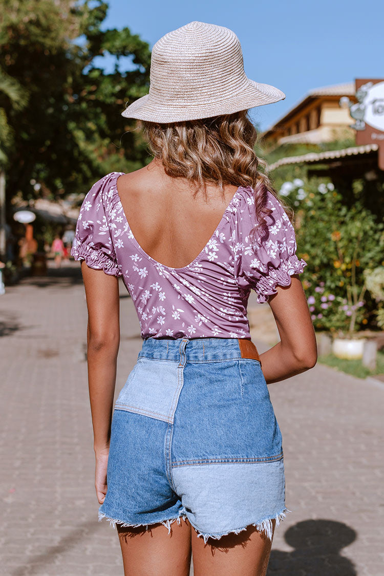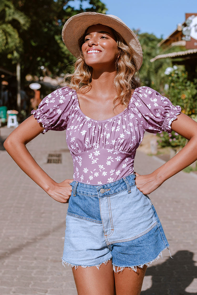 Ditsy Kurzarm-Bodysuit mit Rundhalsausschnitt