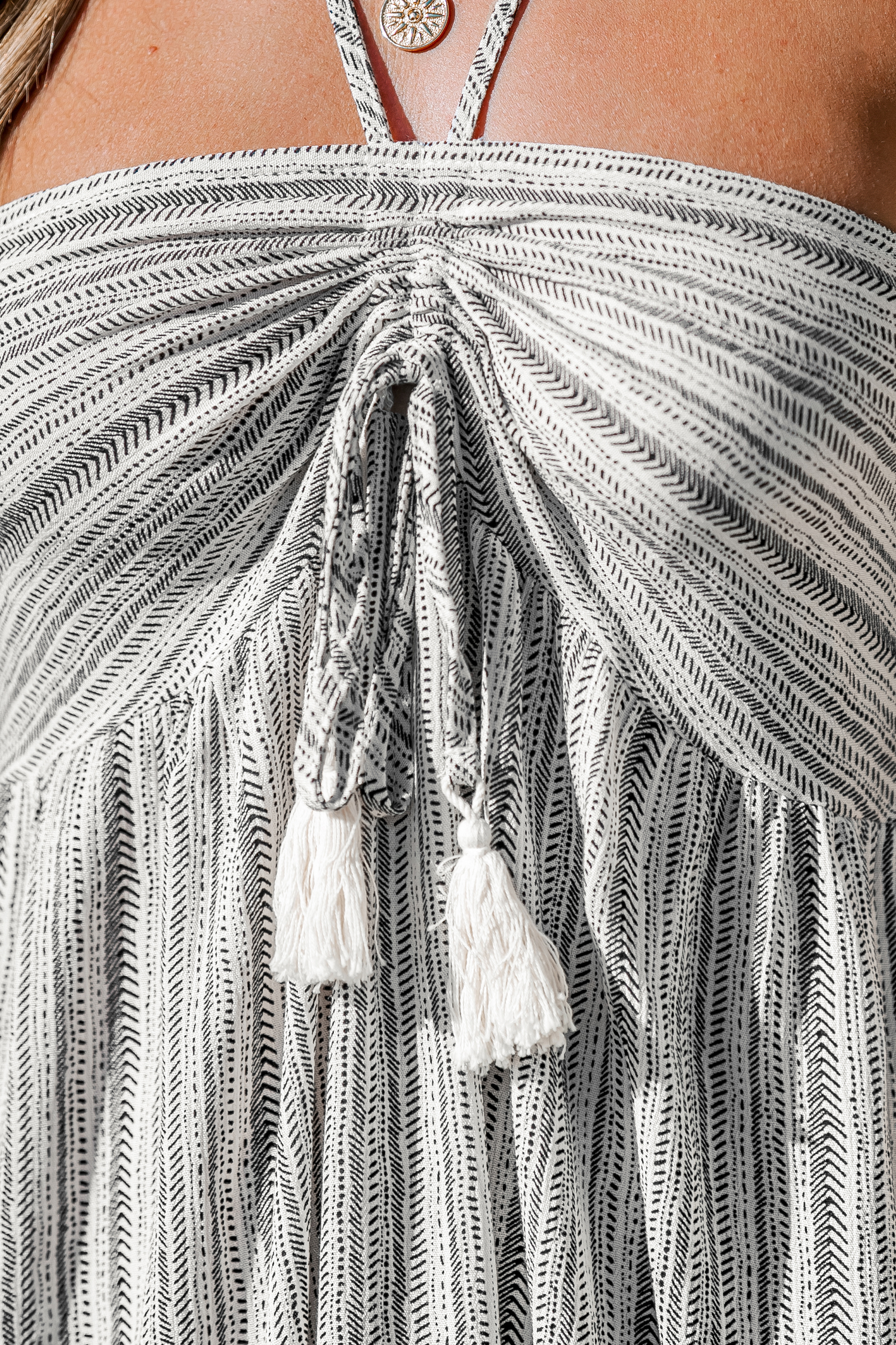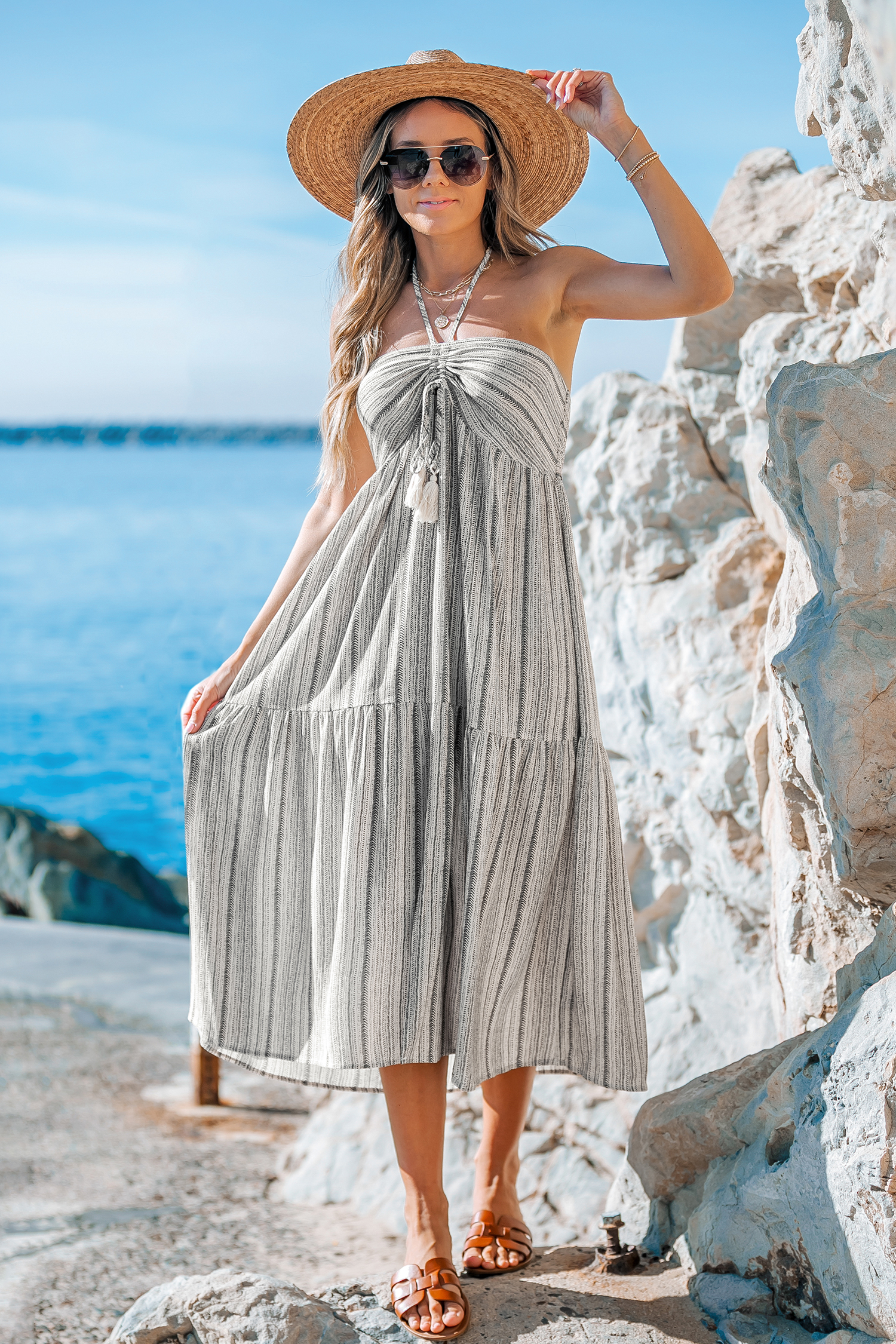Reine Baumwolle Ärmelloses Neckholder-Maxikleid mit Kordelzug