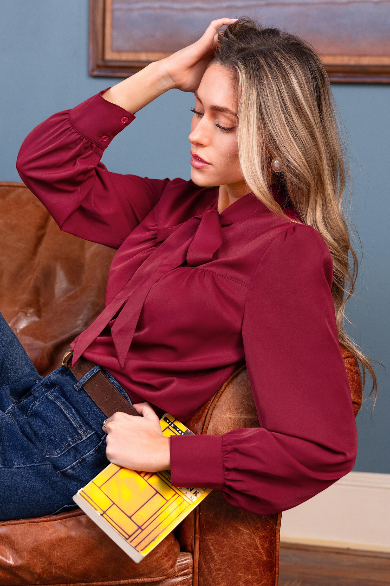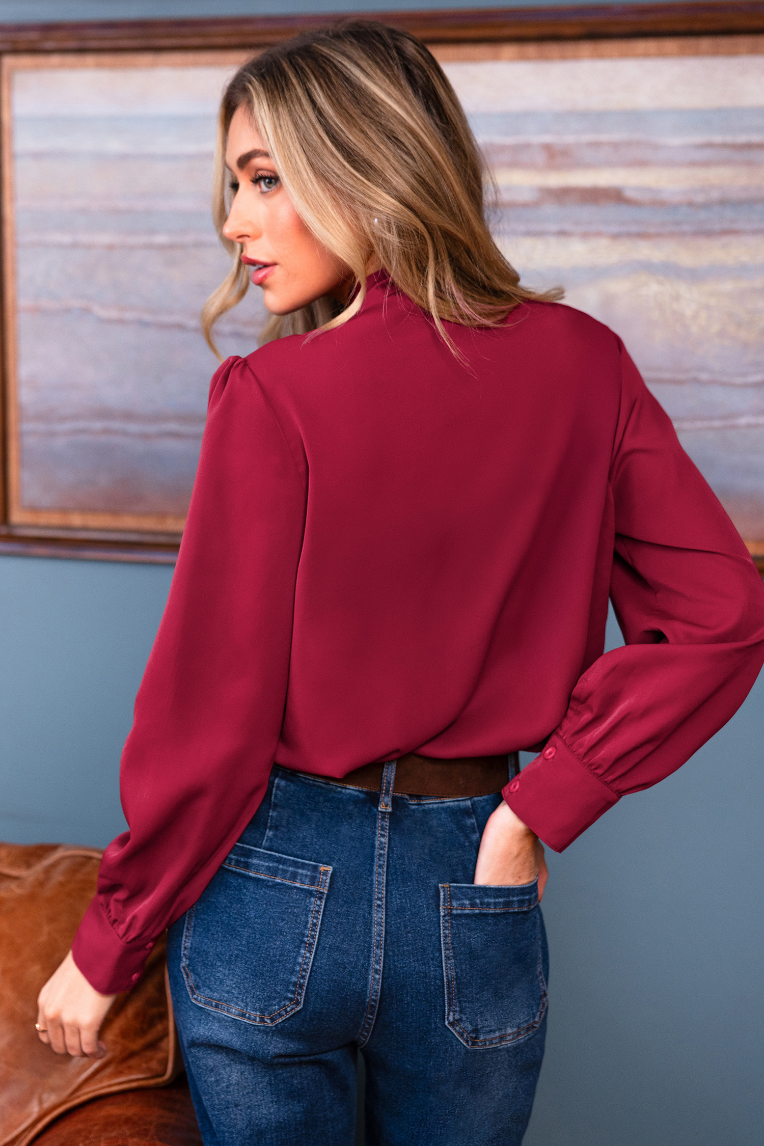 Verleihen Sie Ihrem Tag mit der verträumten roten Bluse eine verspielte Note! Der hohe Ausschnitt, die langen Ärmel und die hübsche Schleife sorgen für einen charmanten, eleganten Look.