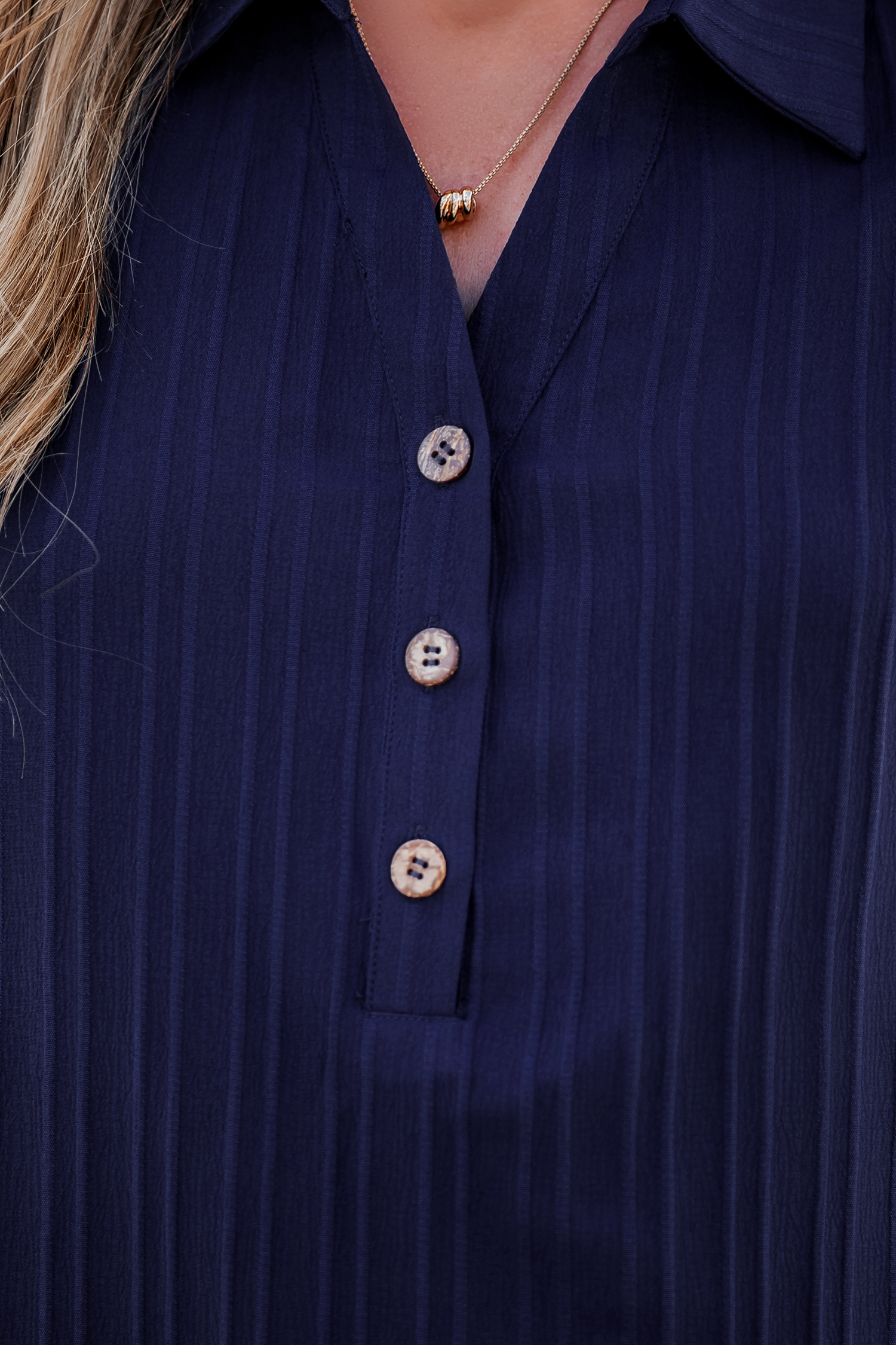 Marinefarbenes Ärmelloses Minikleid mit Knopfleiste