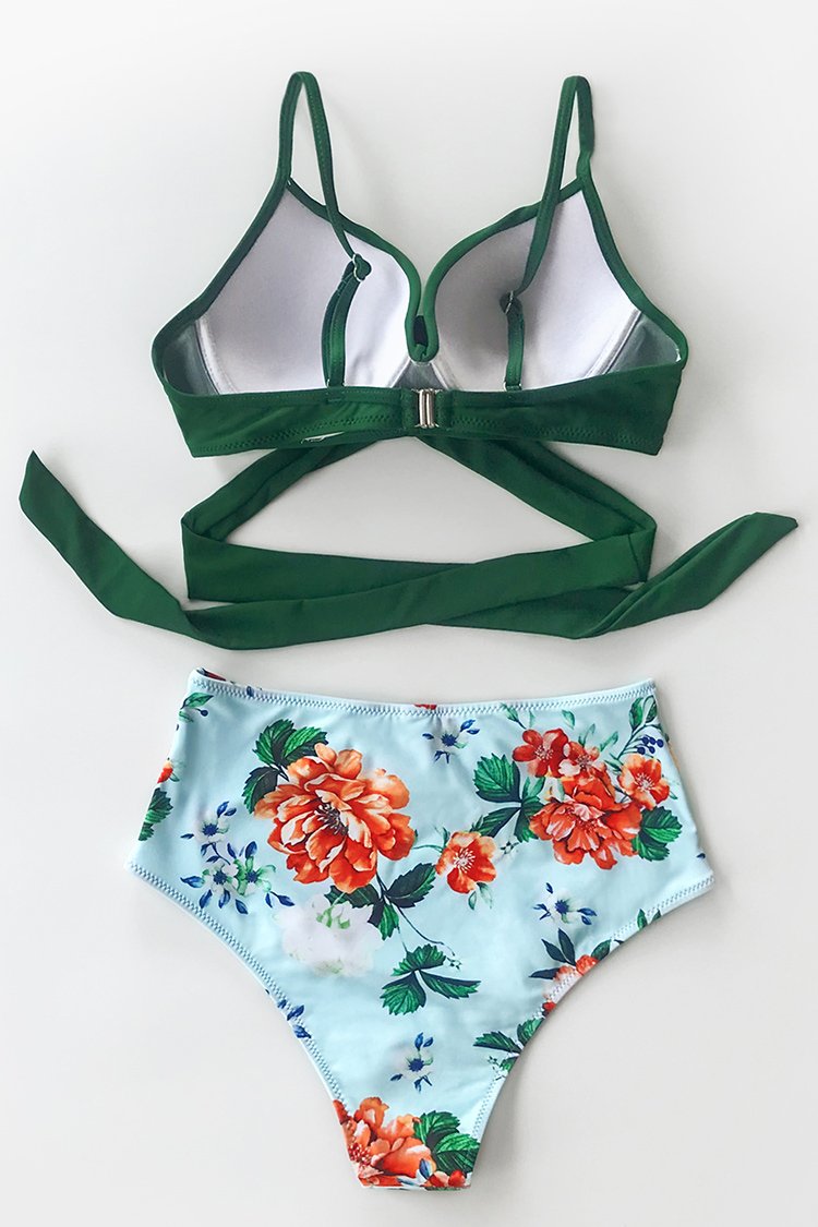 Einfarbiger und floraler Bikini mit hoher Taille und geformten Cups