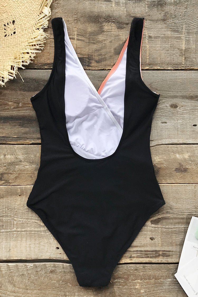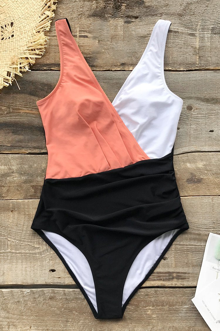 HomeEinteiliger Badeanzug in Rosa Weiß und Schwarz