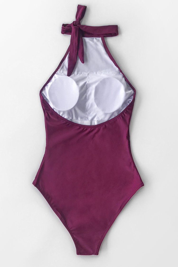 HomeEinteiliger Badeanzug mit lila Stehkragen