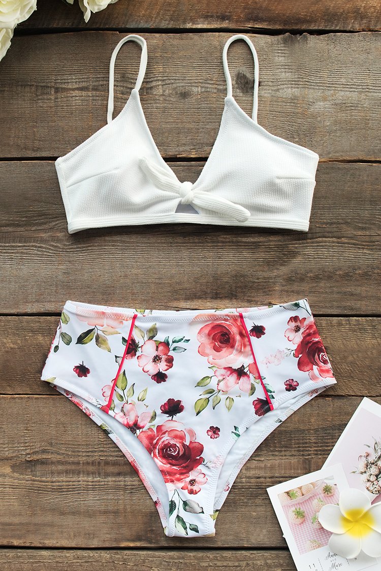 HomeElfenbein und Rose verknoteter High-Waist Bikini