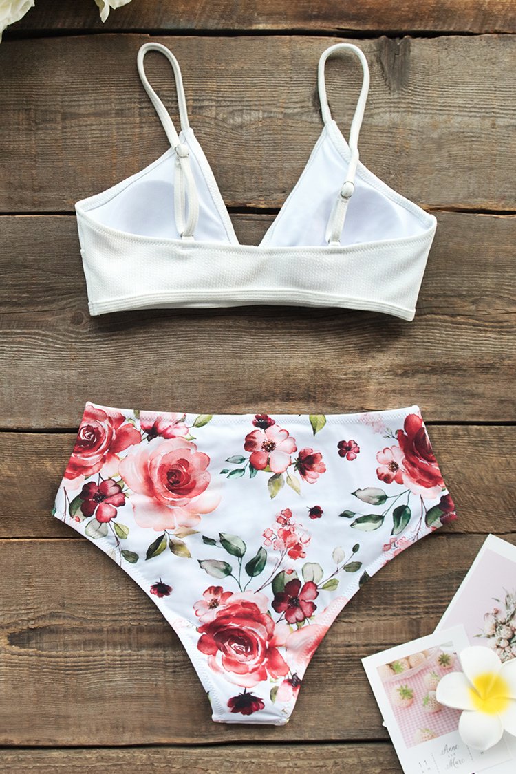 Elfenbein und Rose verknoteter High-Waist Bikini