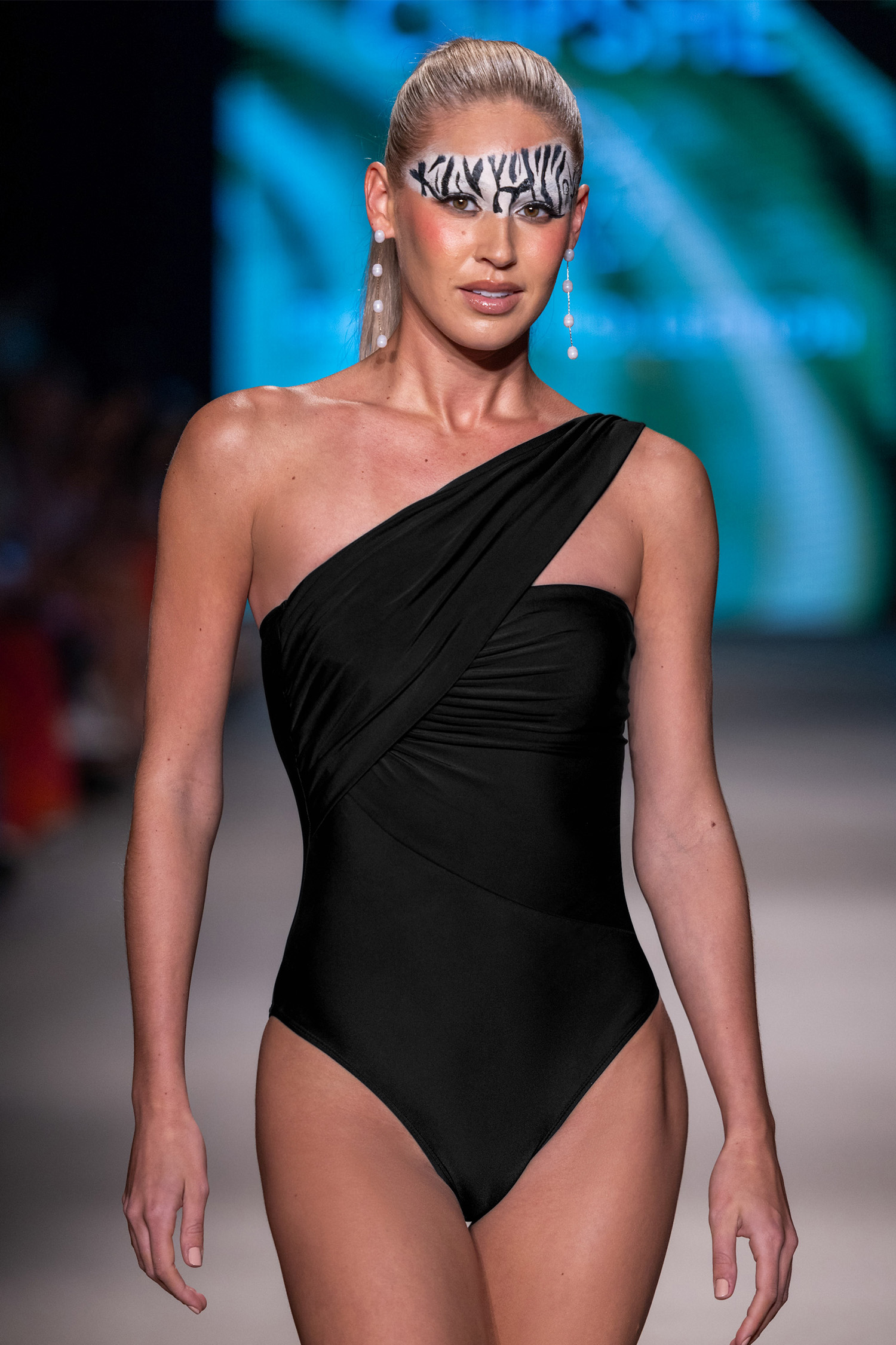 ECO Schwarz Asymmetrischer One-Shoulder-Badeanzug