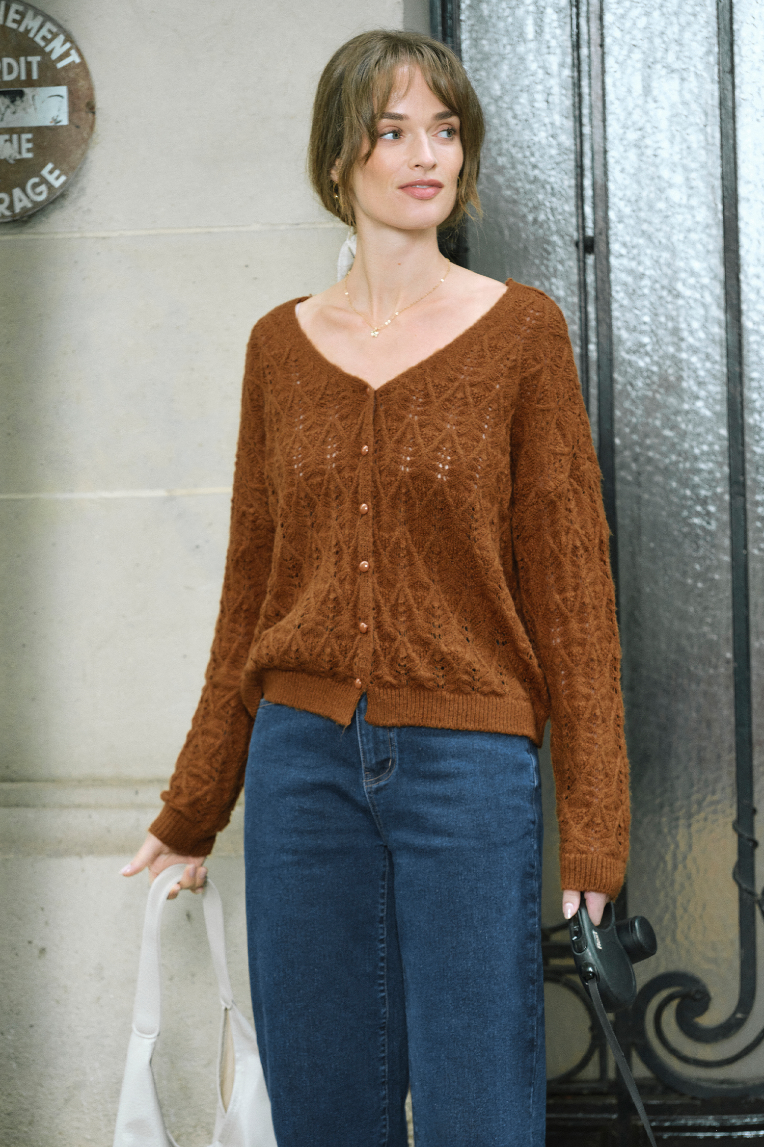 Der Cardigan ist perfekt für langsame Vormittage und gemütliche Nachmittage. Sie hat einen V-Ausschnitt und lange Ärmel für einen bequemen, lockeren Sitz.
