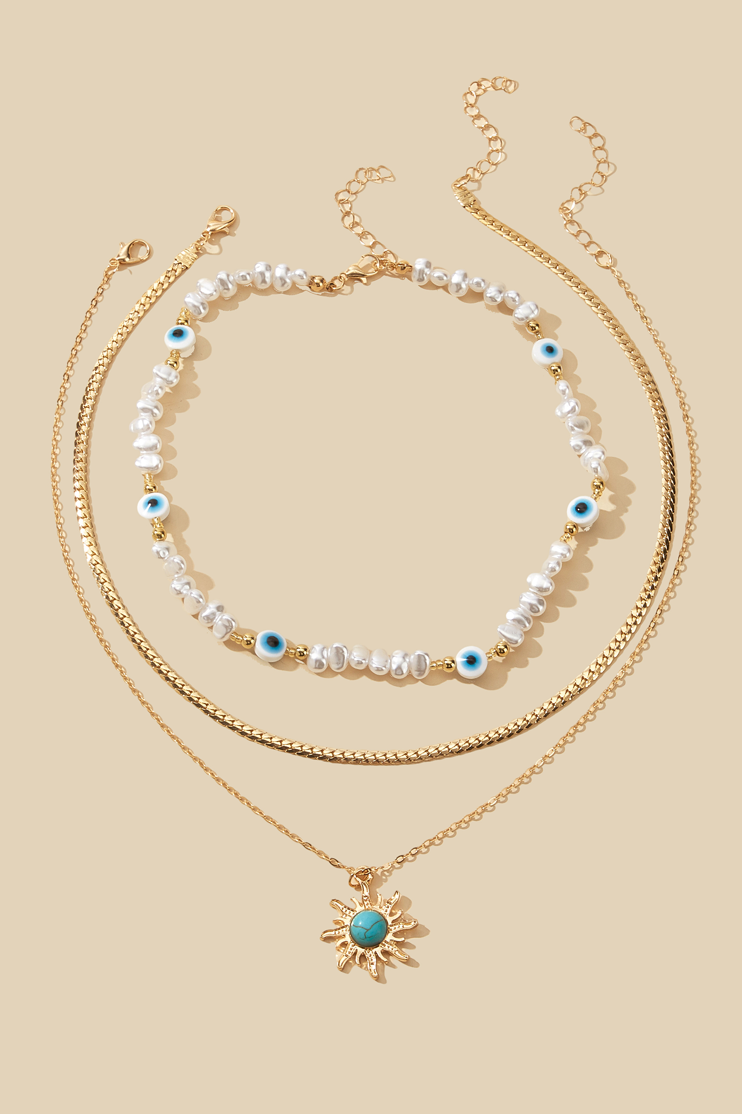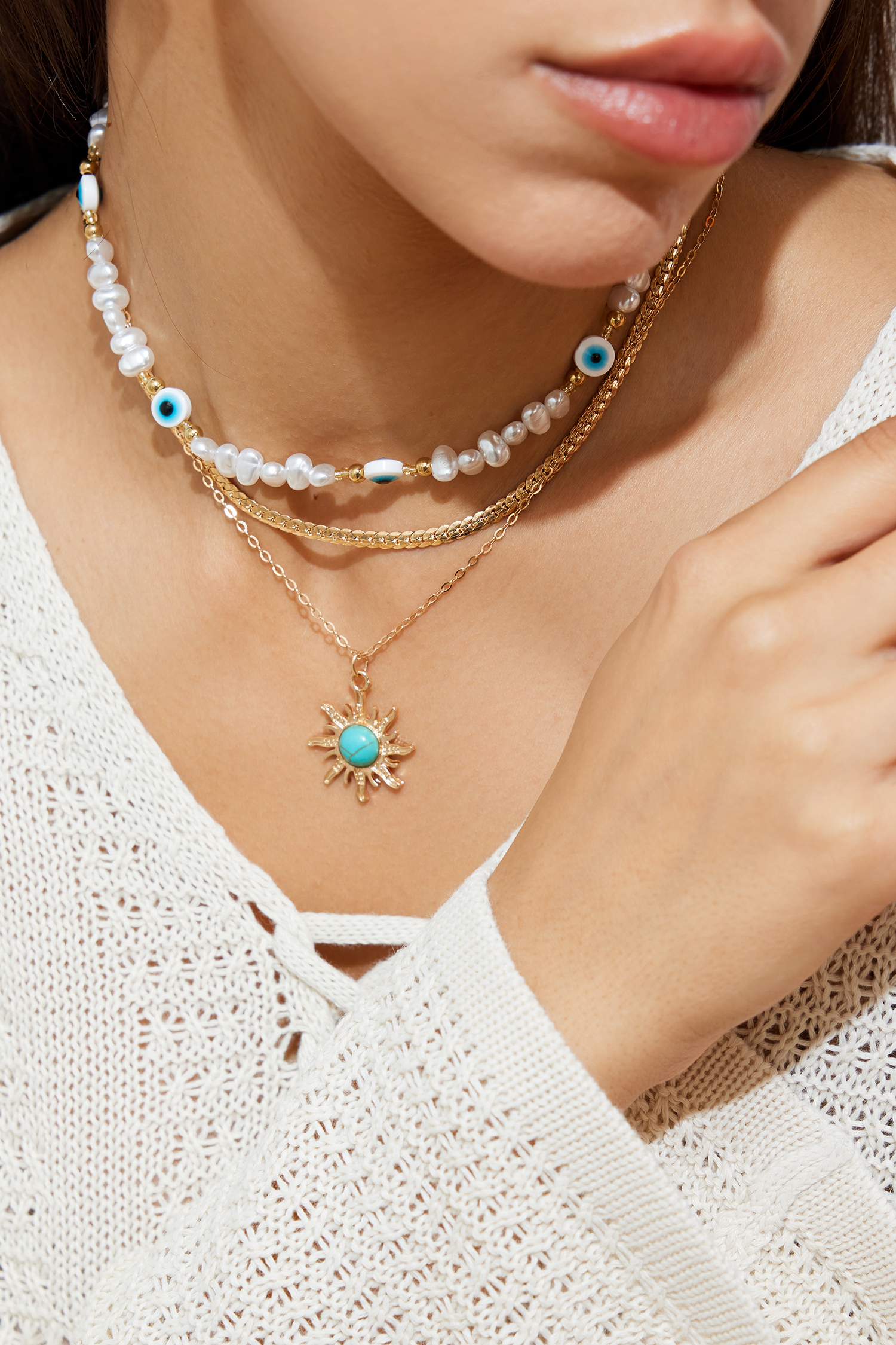HomeGoldfarbene Halsketten mit Kunstperlen