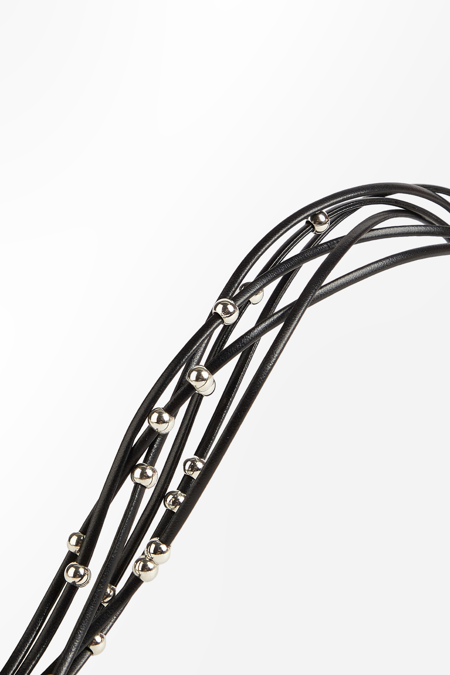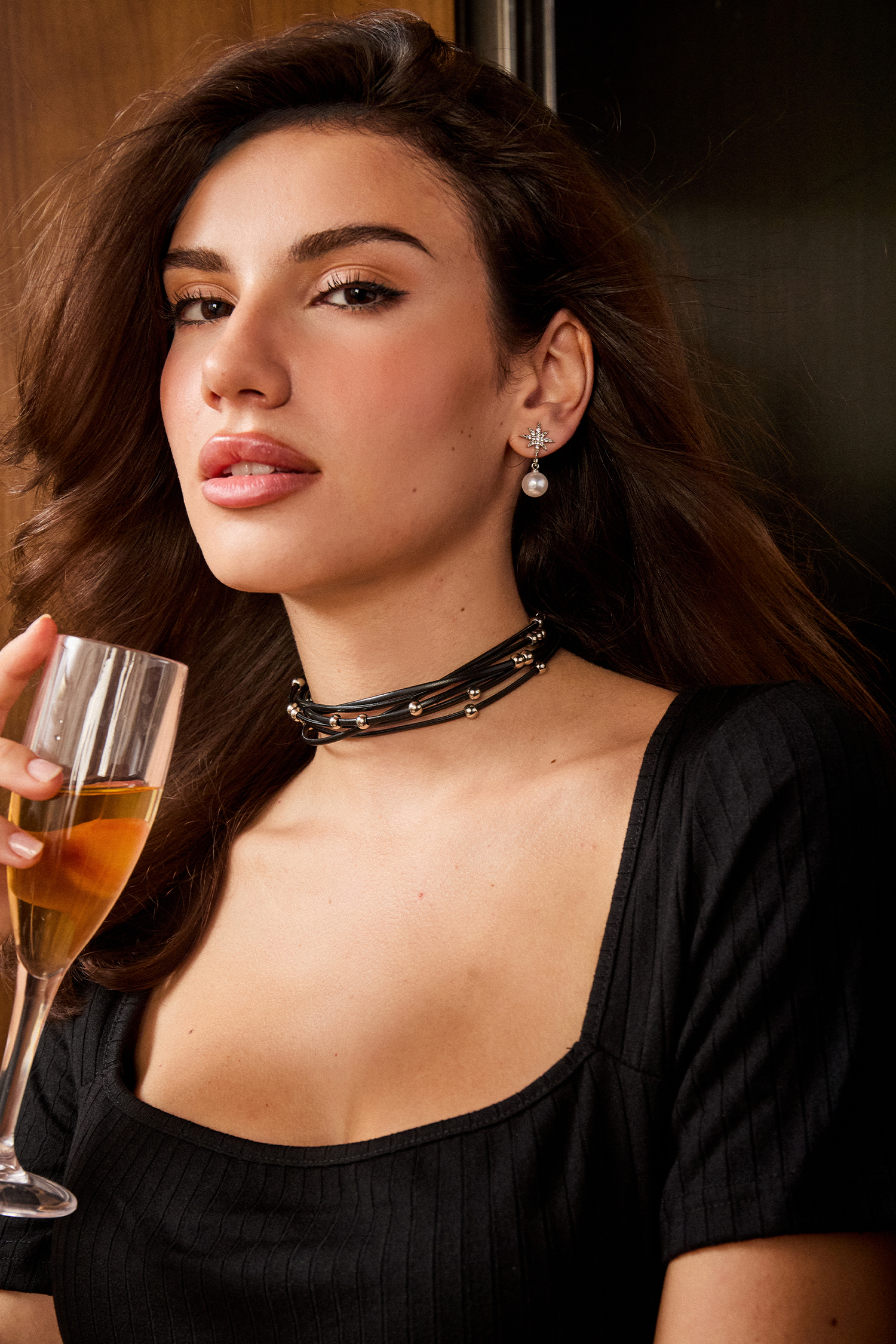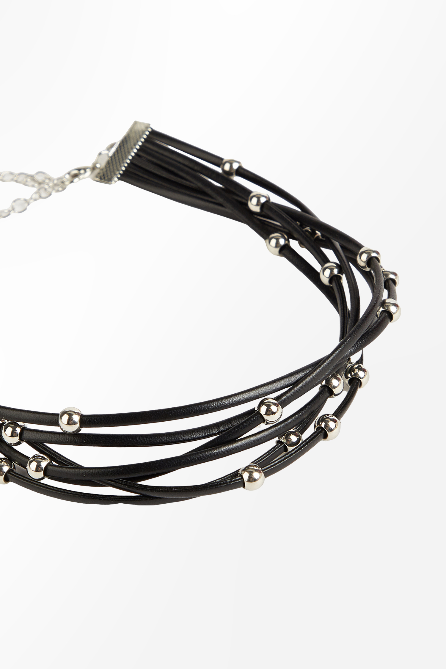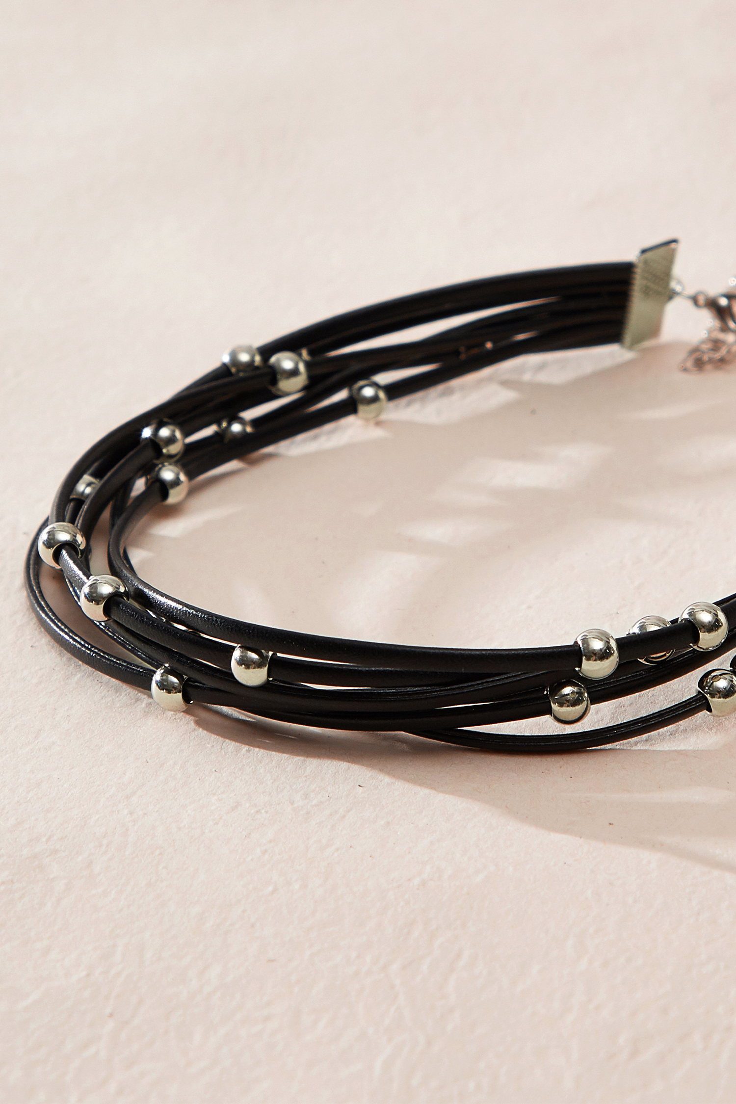 Silberfarbenes Kunstleder-Wickelhalsband mit Perlen