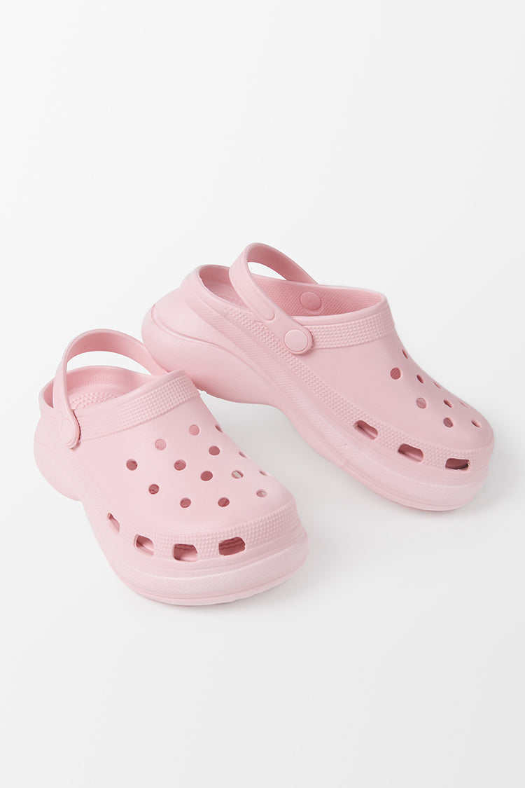 Flache rosa Crocs mit quadratischem Zehenbereich