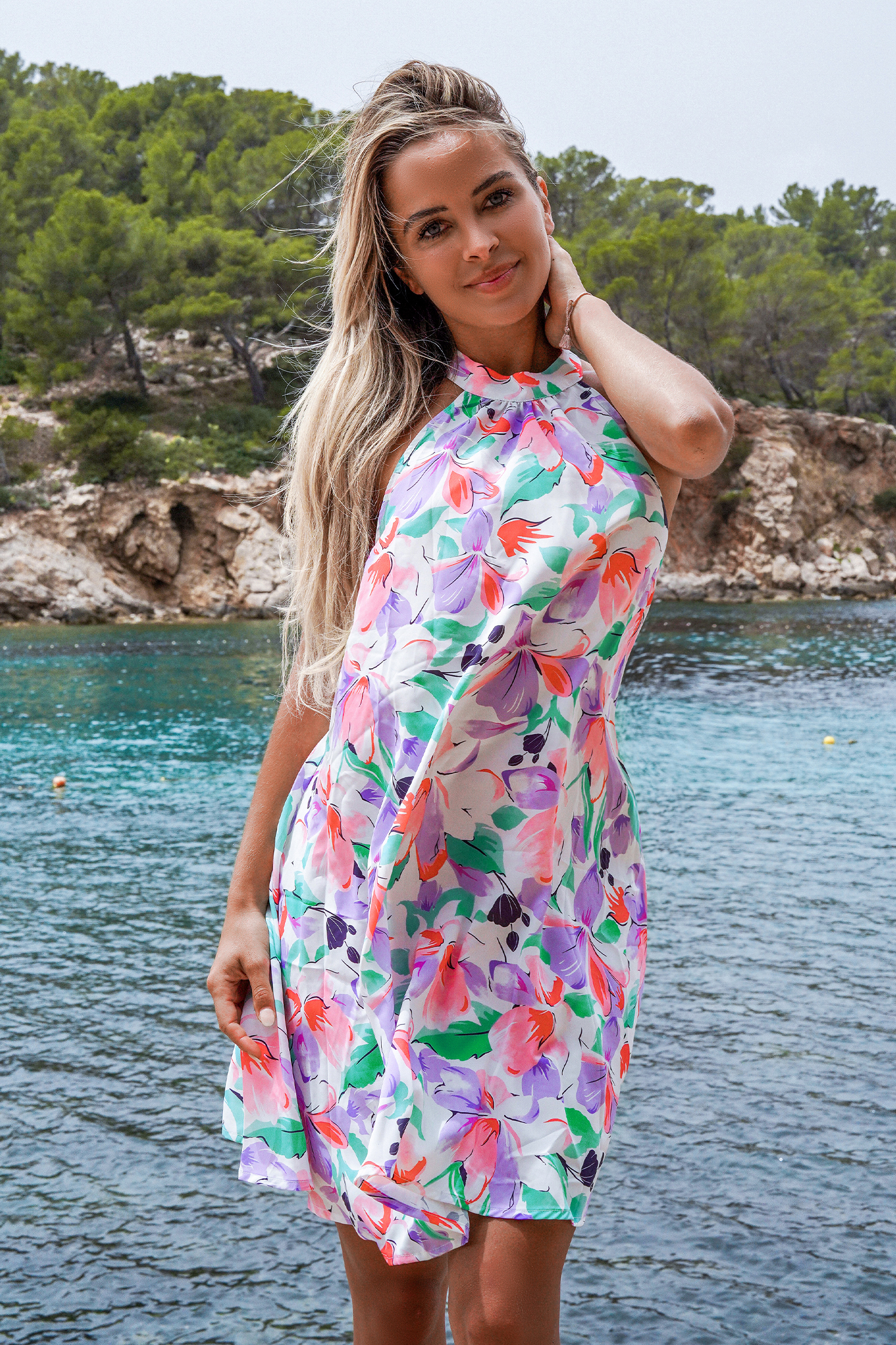 Hochgeschlossenes Minikleid mit Blumenmuster