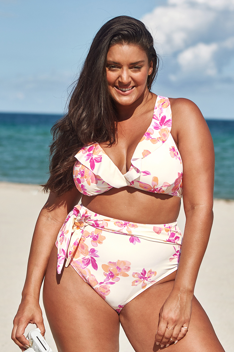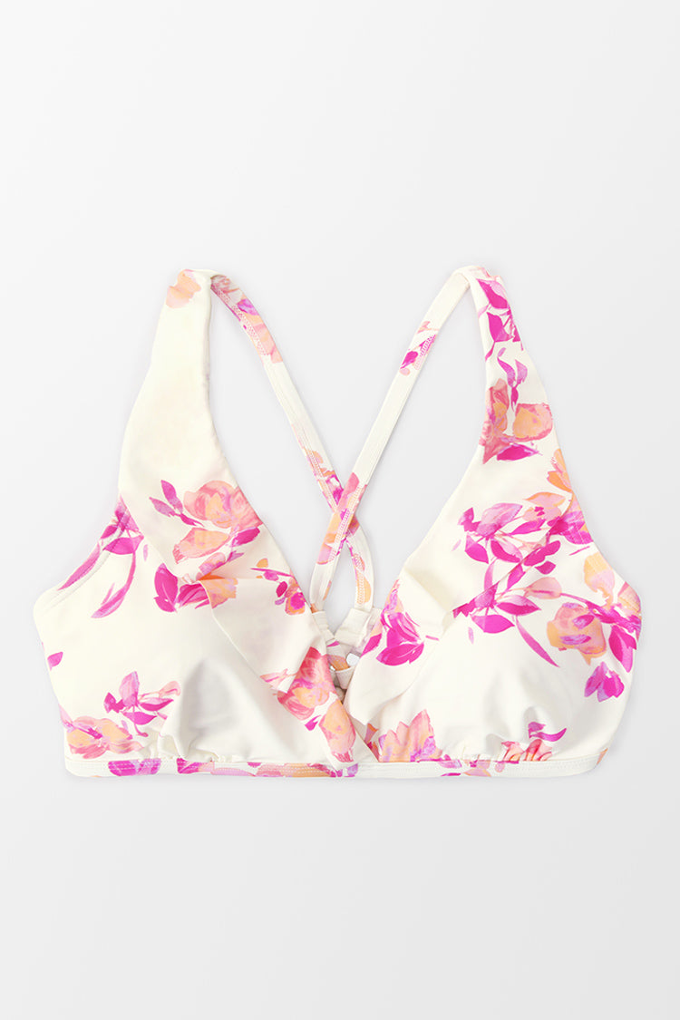 HomeFlorales Bikinioberteil mit Rüschen in großen Größen