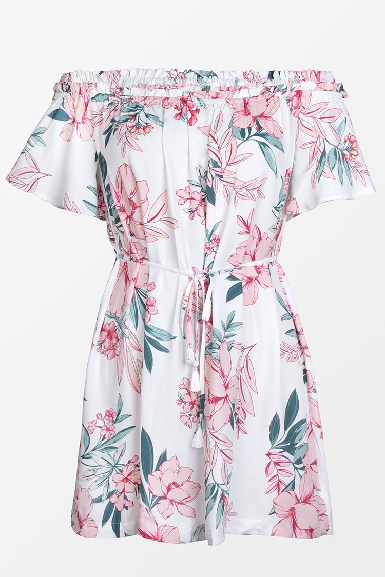 Florales kurzes Kleid mit Rüschenbindung in der Taille