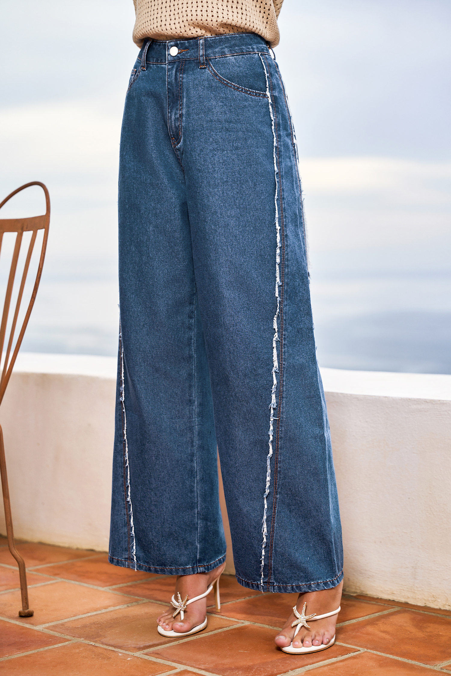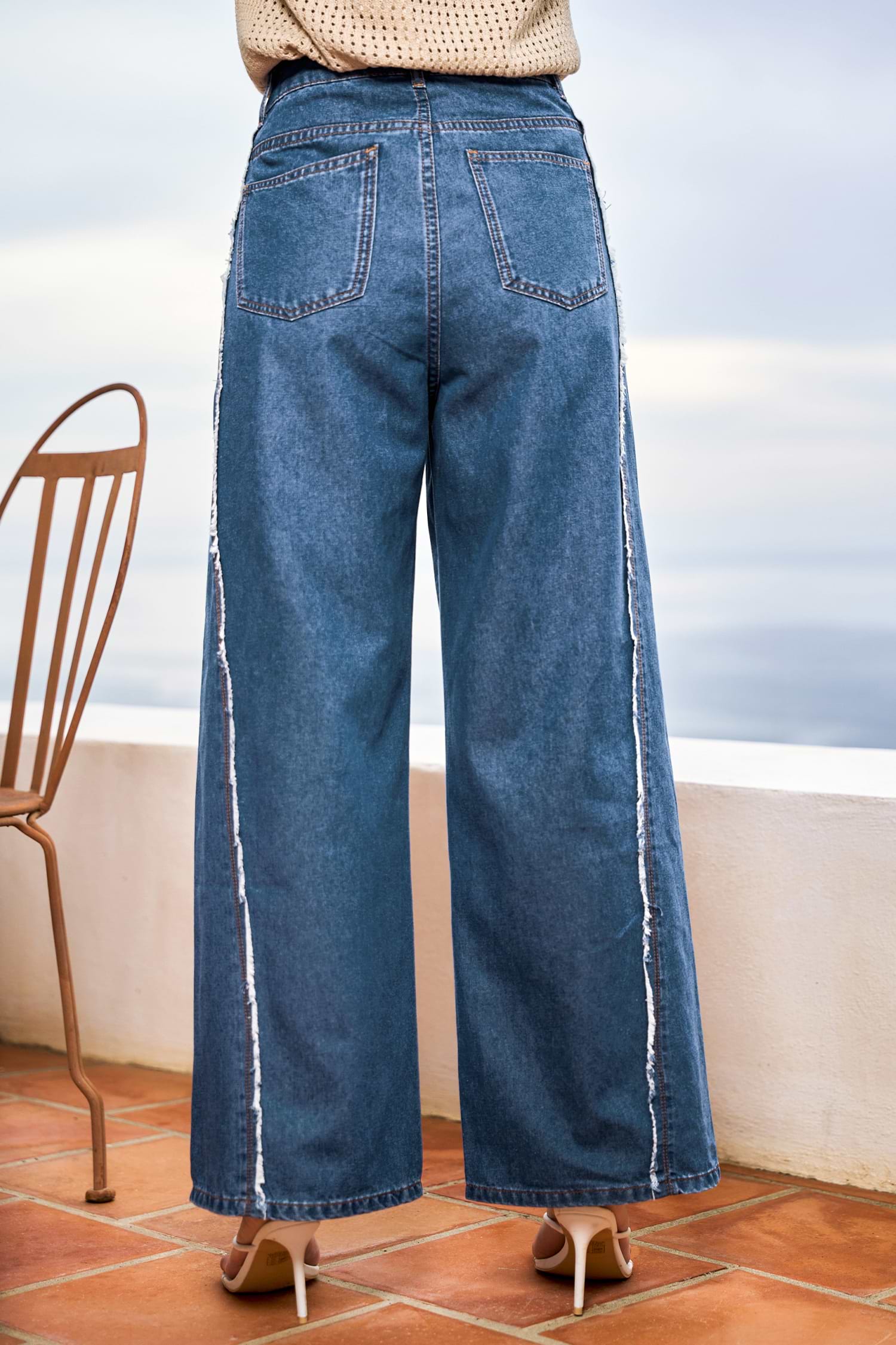 Die blauen Jeans verleihen Ihren Alltagslooks einen verspielten Charme! Gürtelschlaufen, Taschen und der gerade Schnitt machen sie zu einer bequemen, vielseitigen Passform, die sich vom Tag bis in die Nacht tragen lässt.