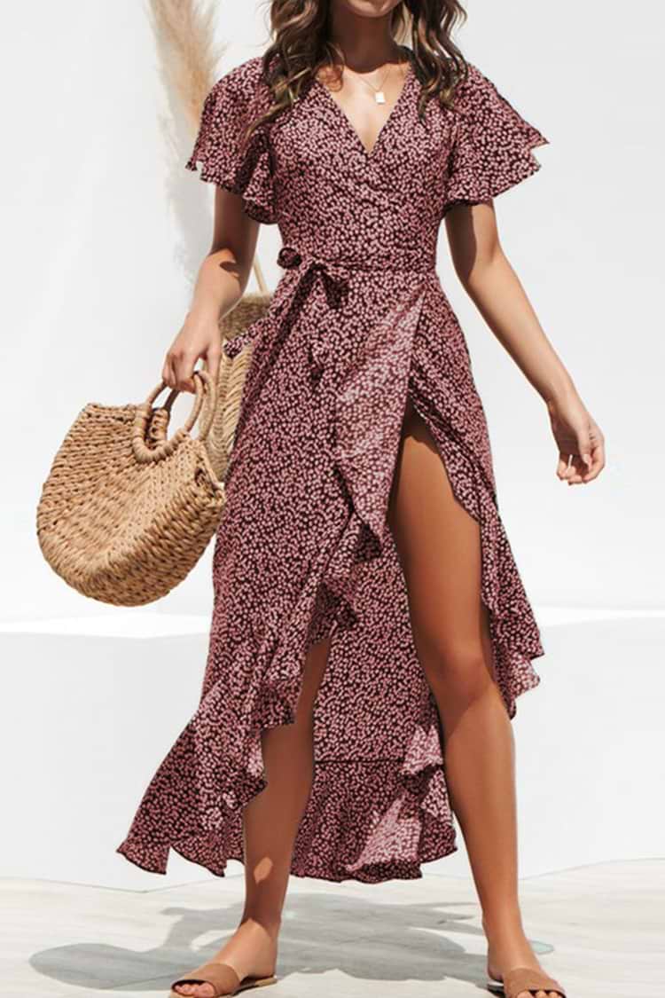 Front offen Rüschen V-Ausschnitt A-förmiges Kleid