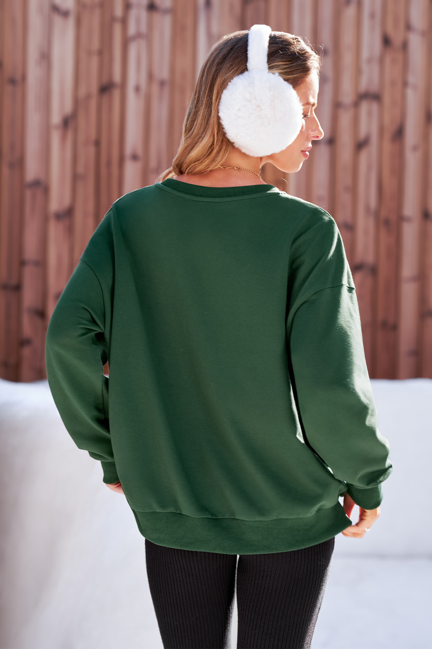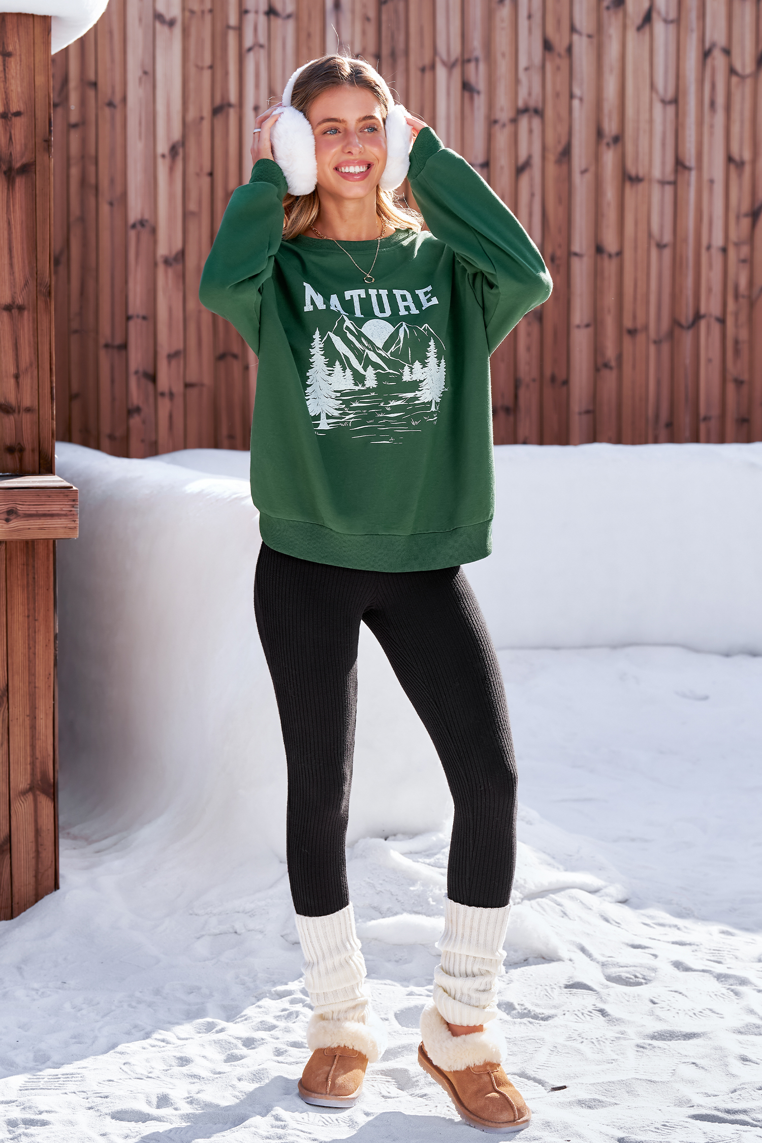 Entdecken Sie innere Ruhe in diesem grünen Sweatshirt. Gefertigt aus weichem Strickmaterial mit Rundhalsausschnitt und langen Ärmeln, ist es dein perfekter Begleiter für entspannte Tage mit einem Hauch von Gemütlichkeit.