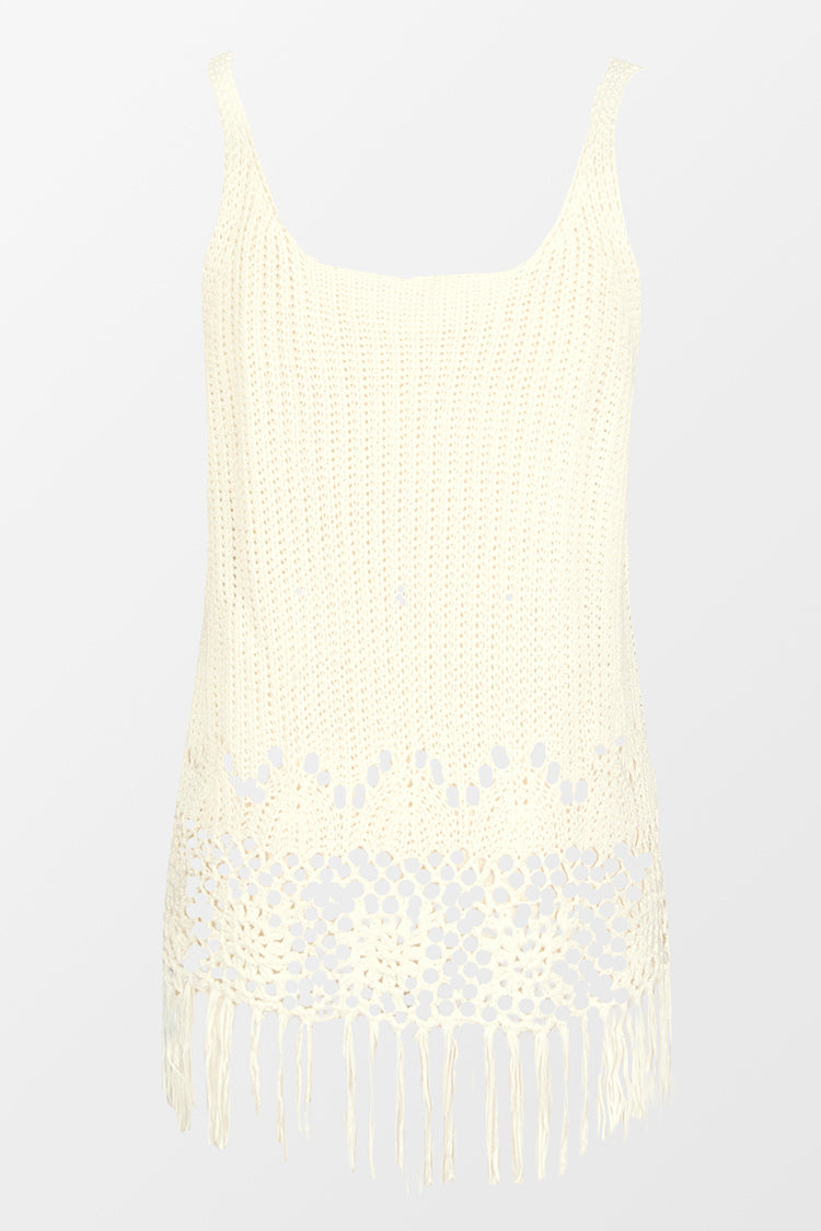 Gehäkeltes Cover-Up mit breiten Trägern und Quasten