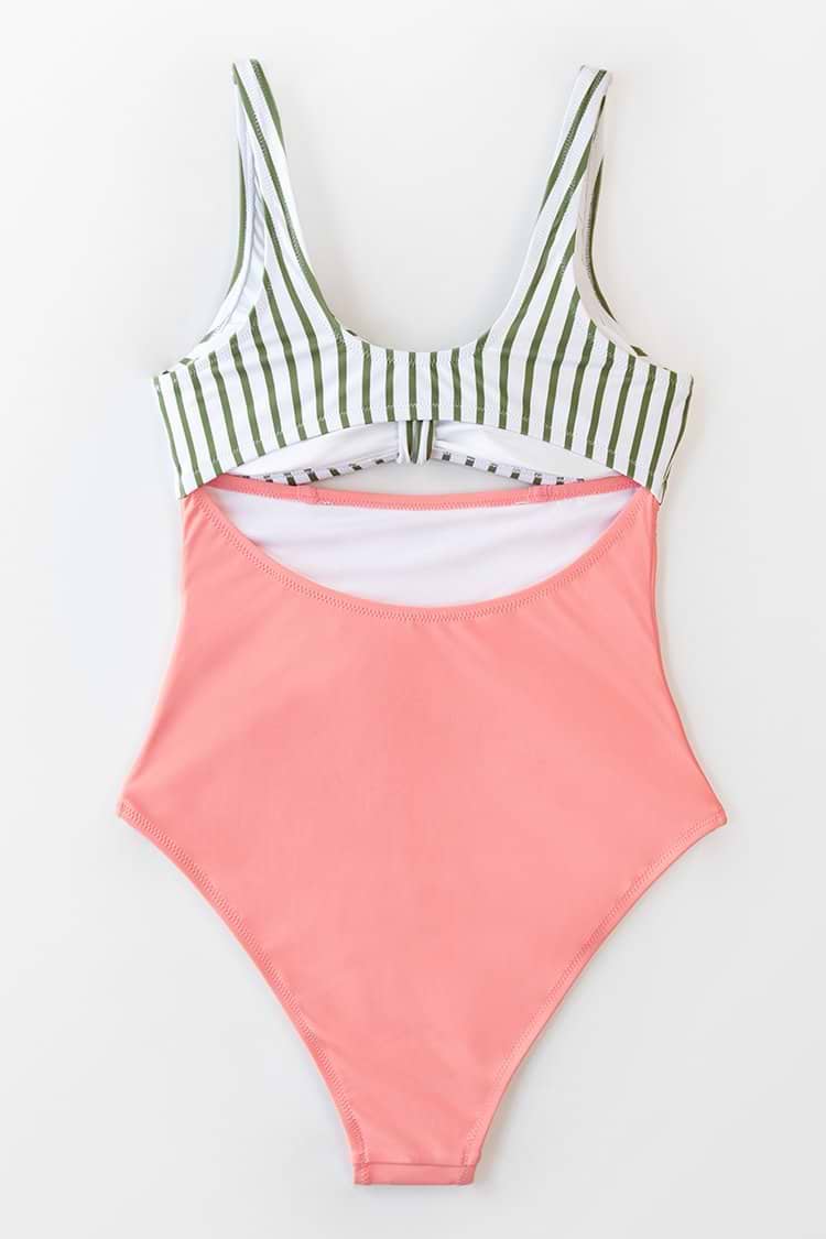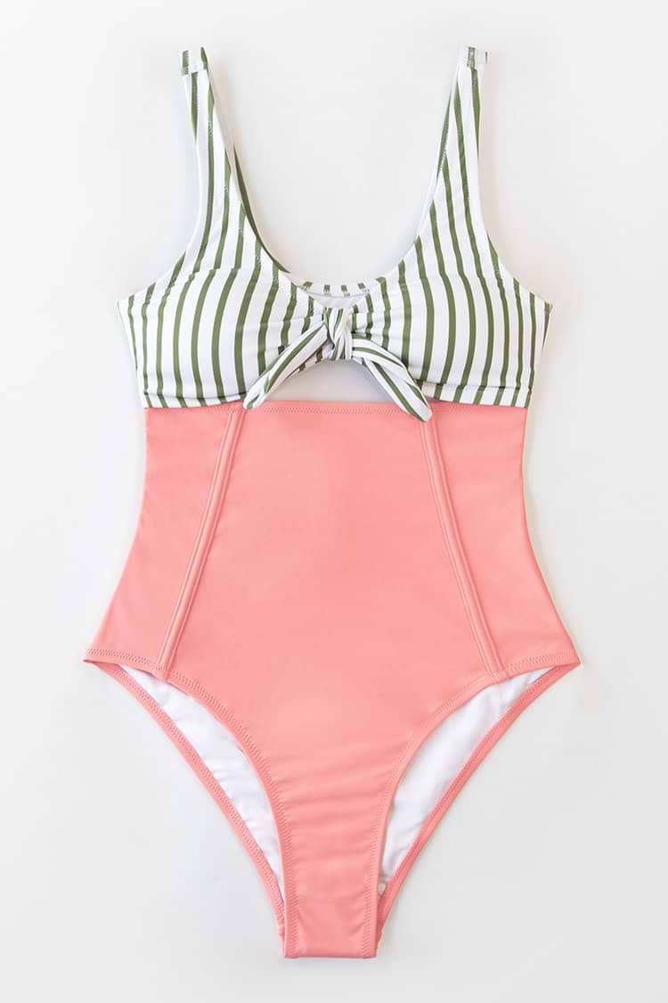 Geknoteter Badeanzug mit Streifenmuster in Pfirsichfarbe