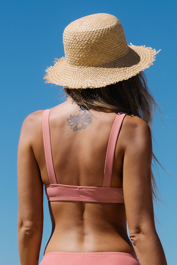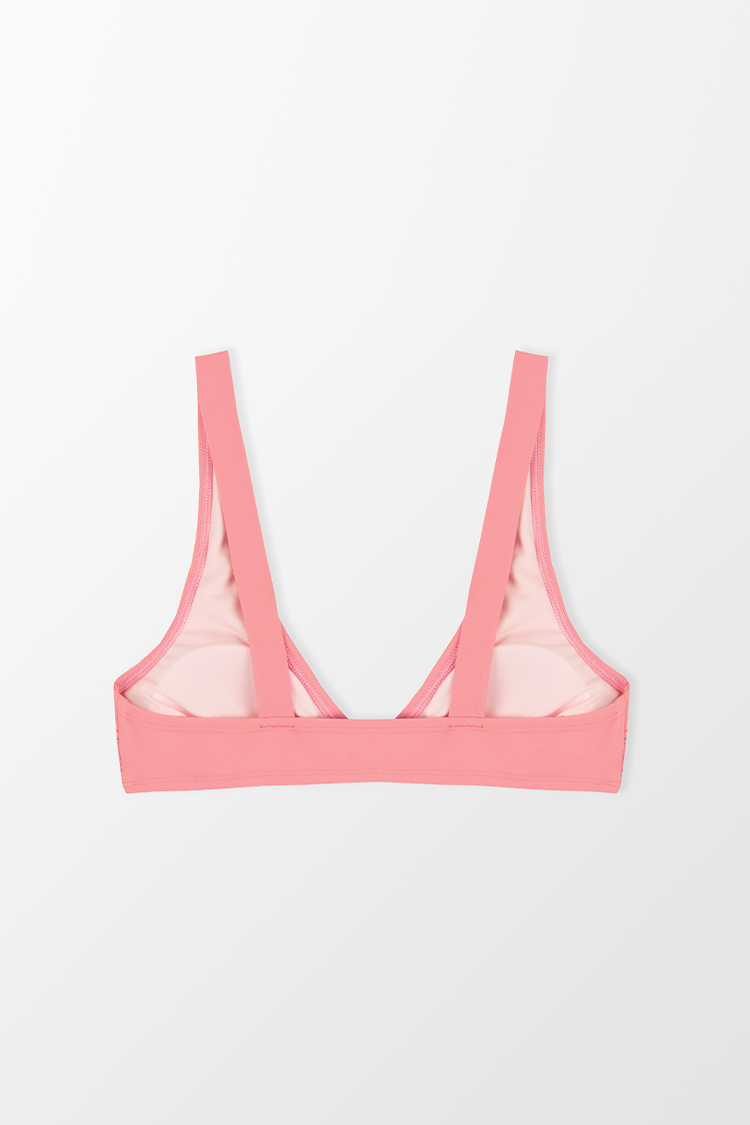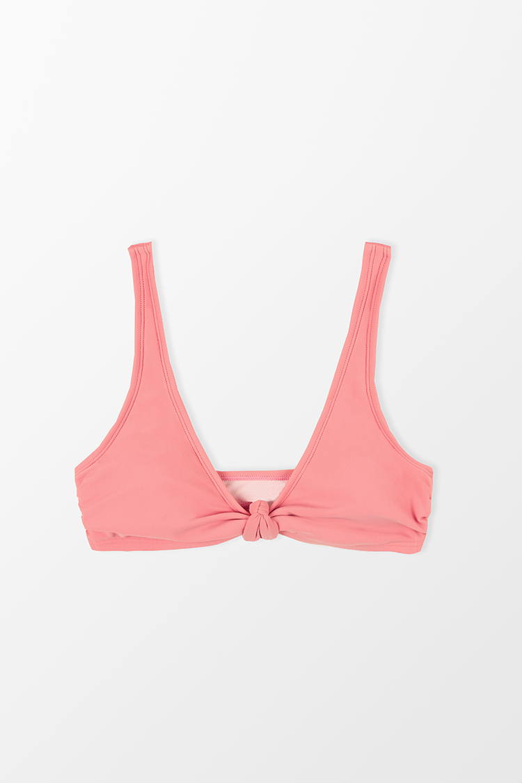 Rosa Bikinioberteil mit V-Ausschnitt und Knoten vorne