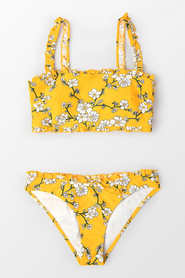 HomeGelb Blumen Bandeau Gekräuselter Bikini