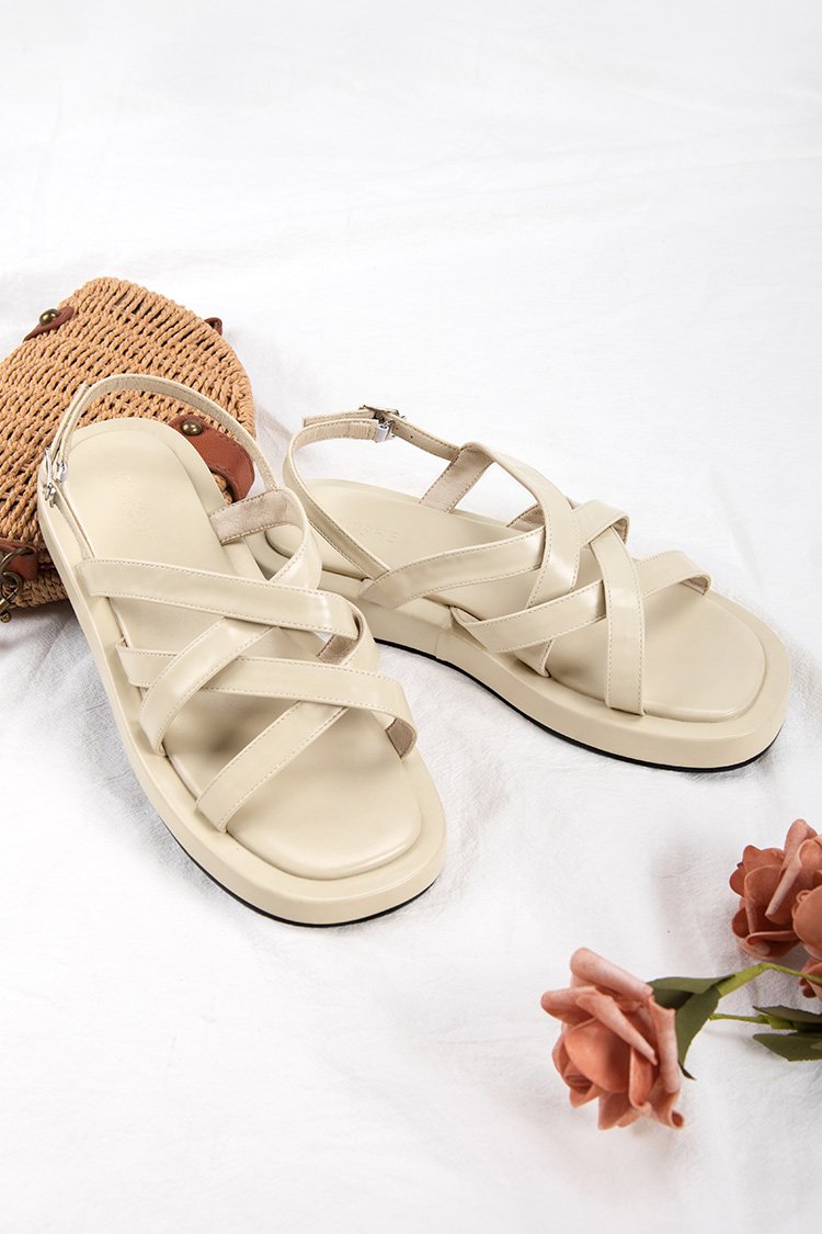 HomeGelbe Sandalen mit gekreuzten Riemen und Schnalle