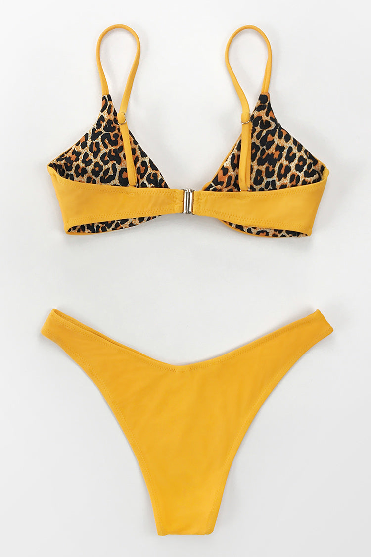 Animal Print Tiefer V-Ausschnitt Neckholder-Badeanzug