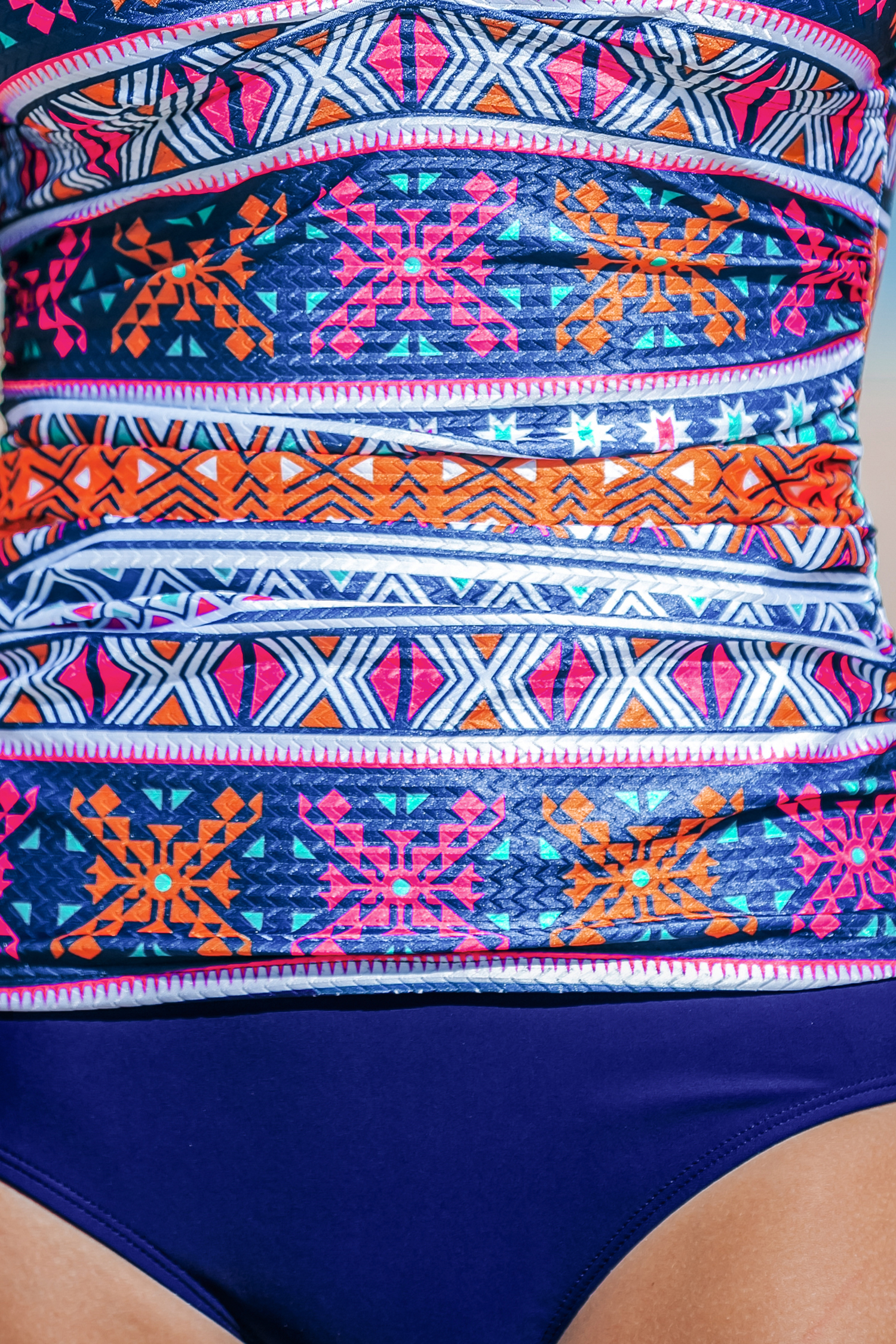Geo Boho Crossback Tankini Oberteil & Mid-Rise Bikinihose