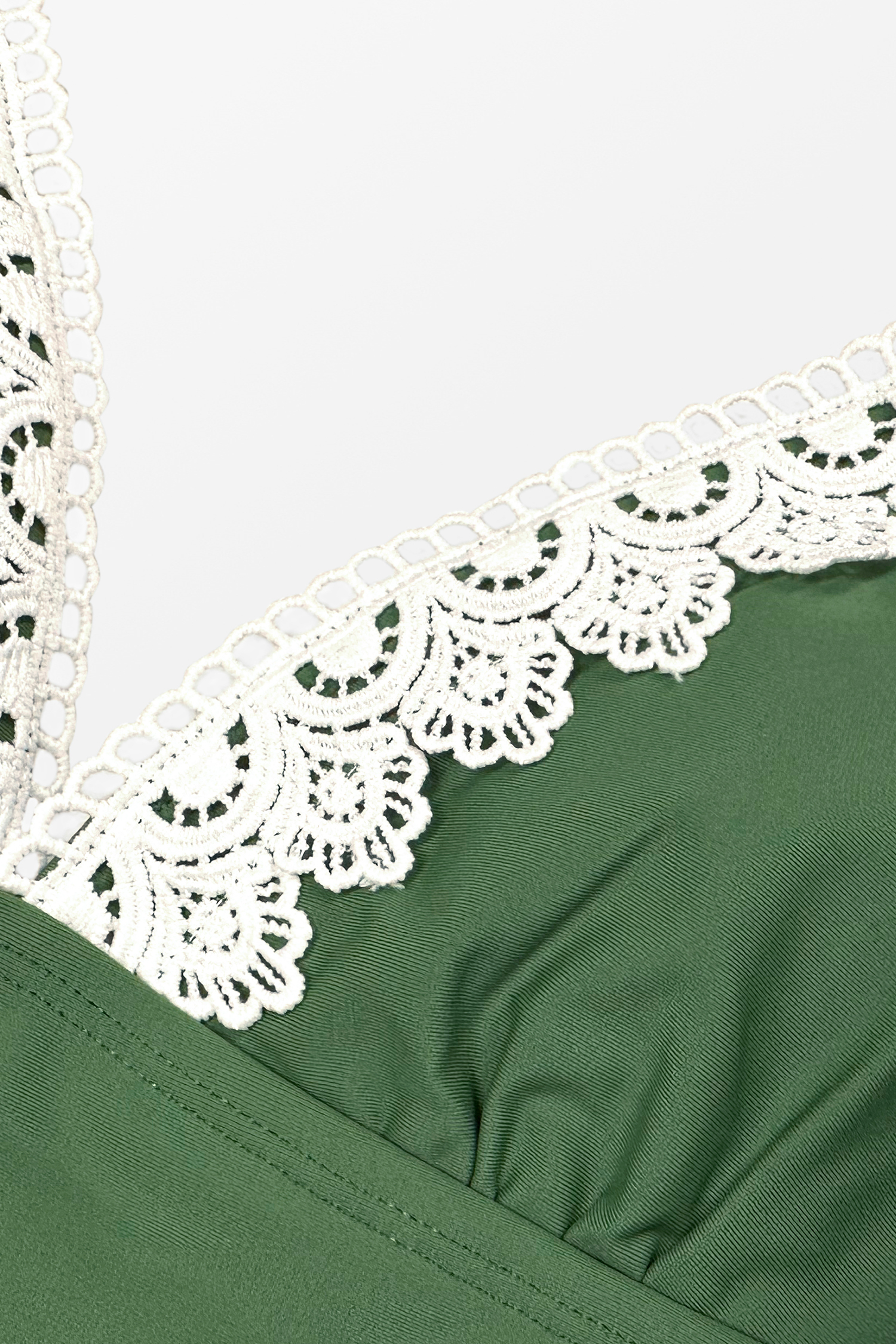 Geraffter Monokini-Badeanzug mit Spitzenbesatz