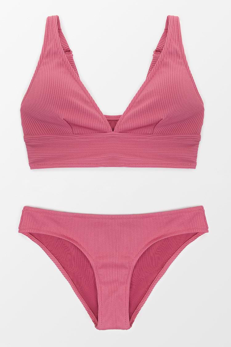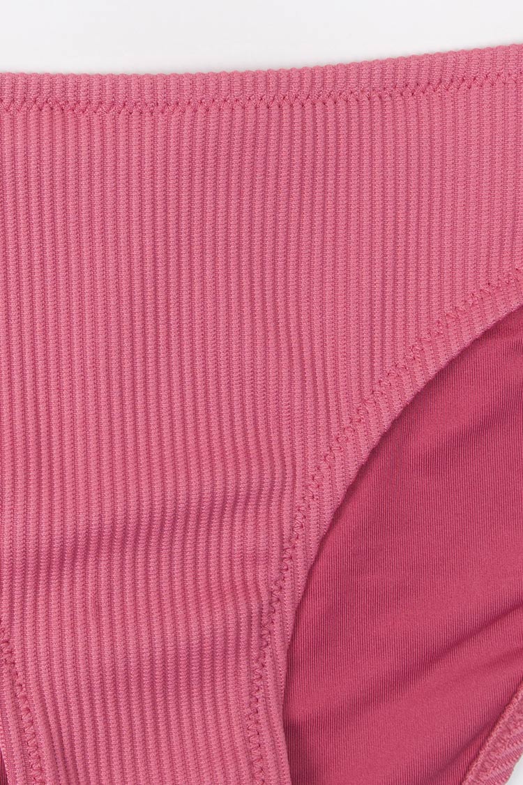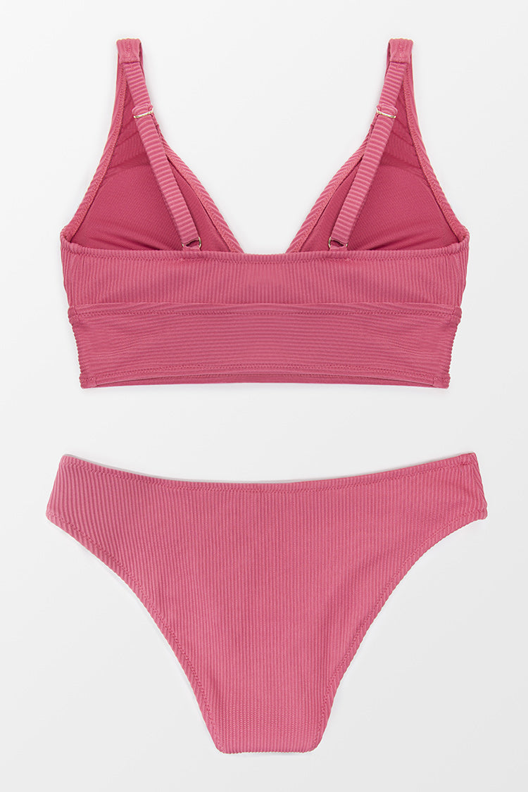 Gerippter Bikini mit V-Ausschnitt und niedriger Taille