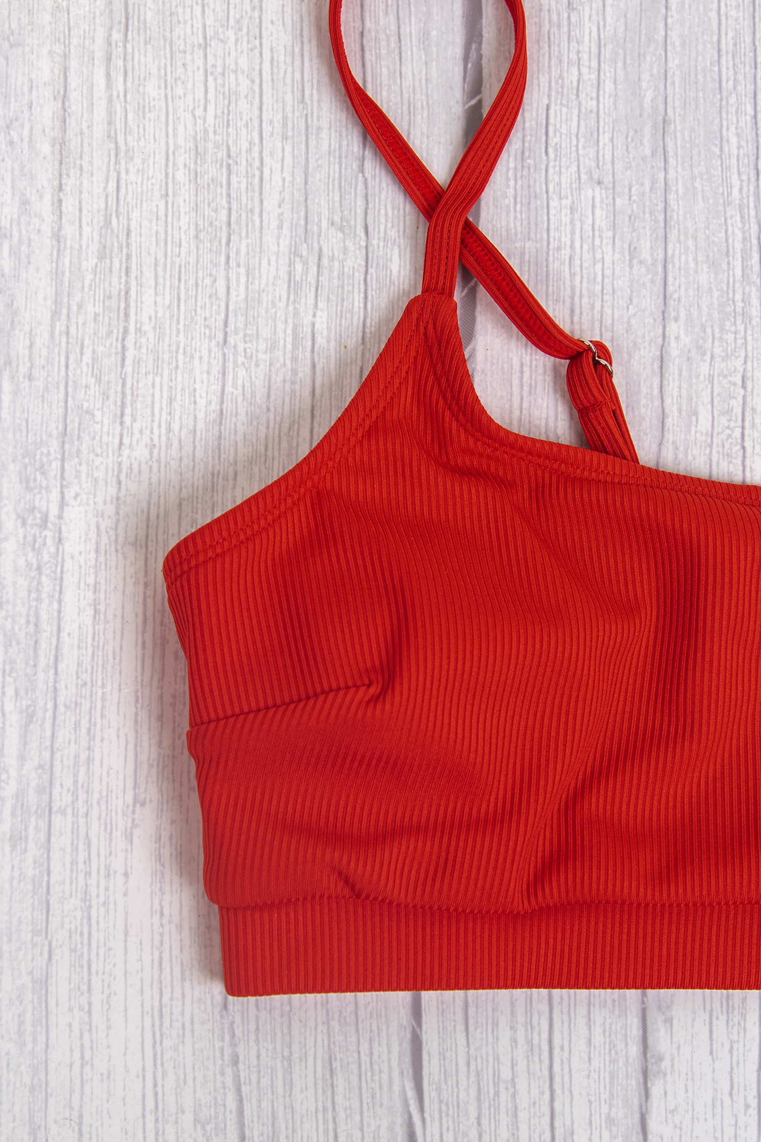 Geripptes Bralette mit U-Ausschnitt und gebändertes Bikini-Set mit hoher Taille