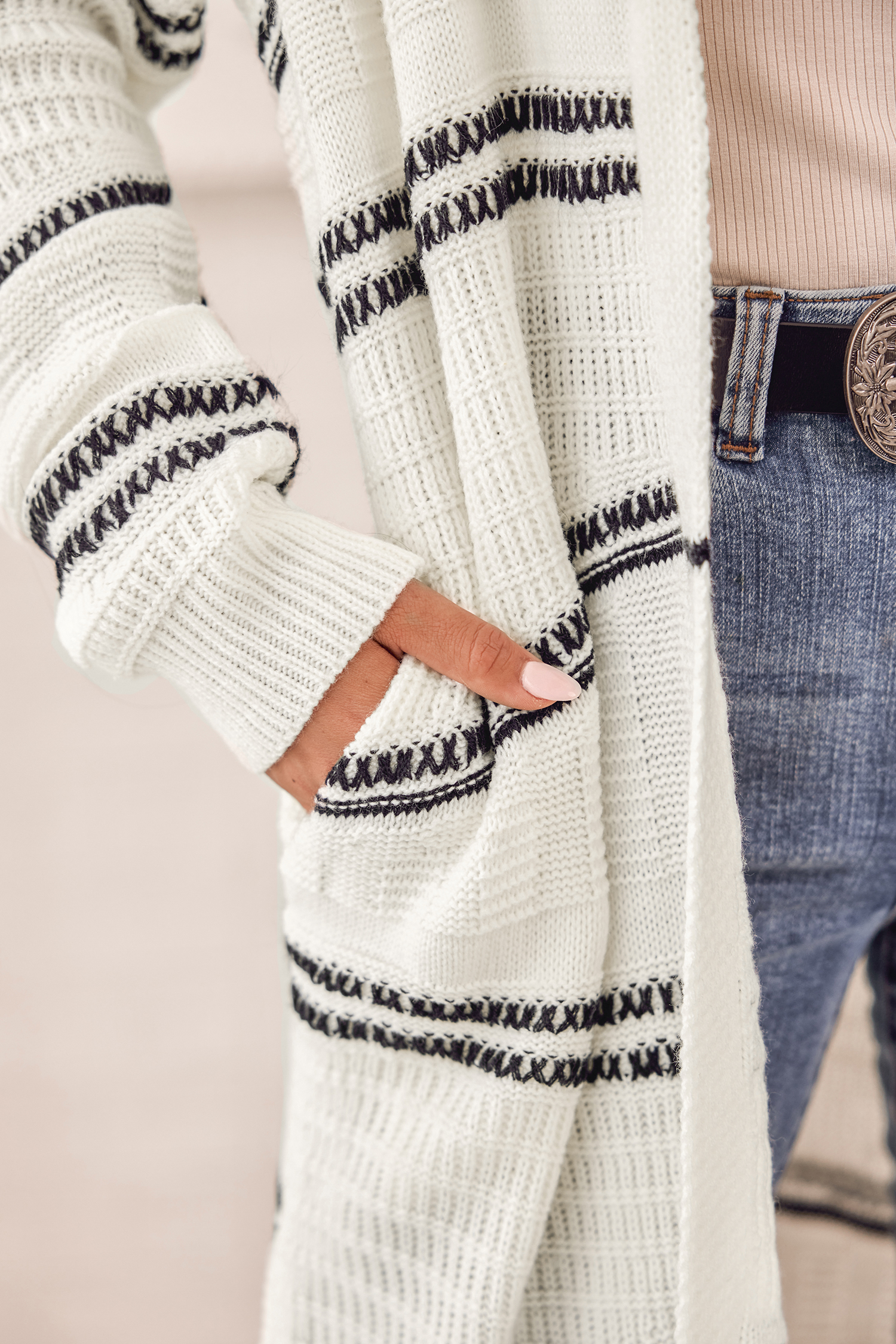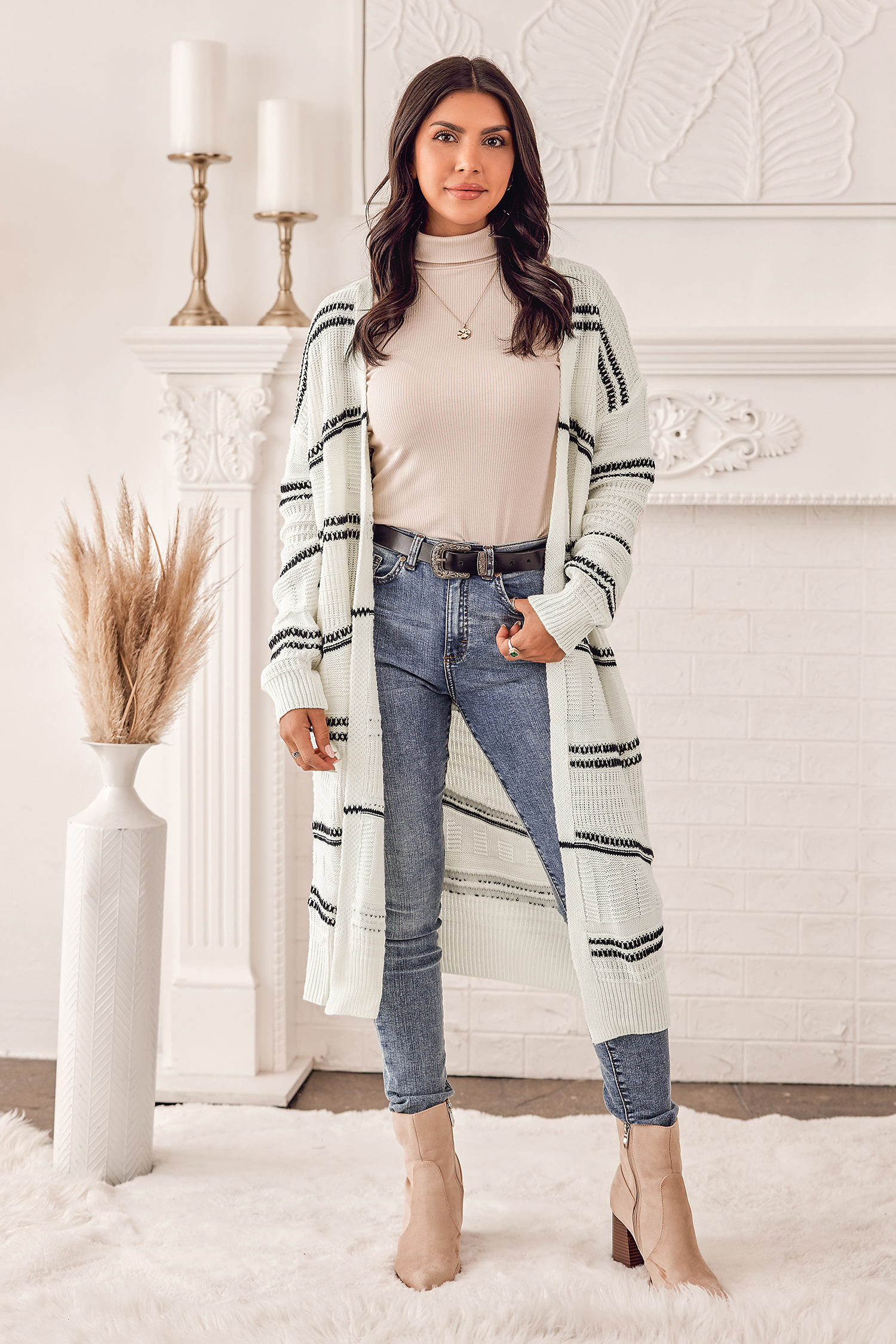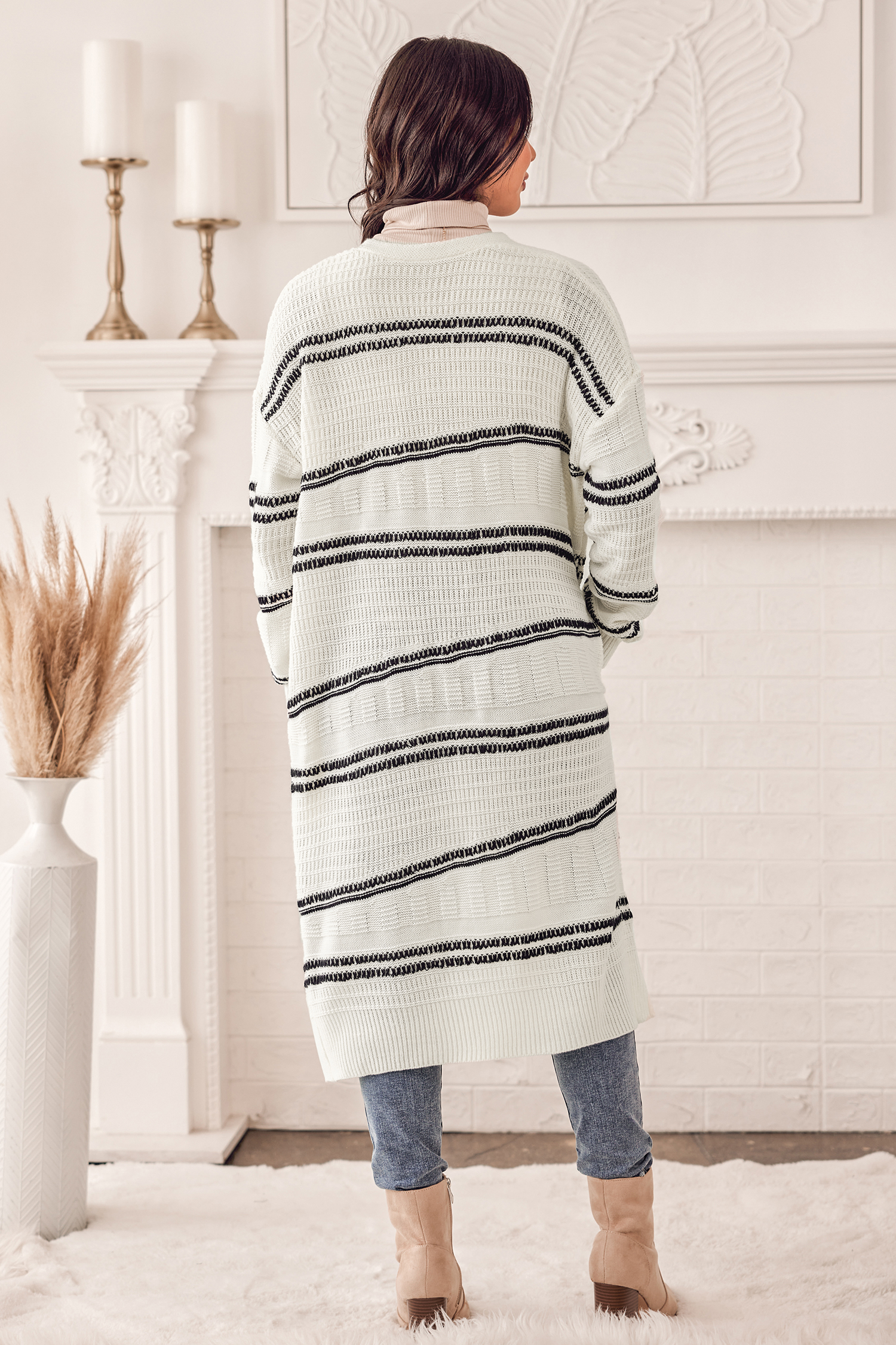 Gestreifte Longline-Strickjacke mit offener Vorderseite