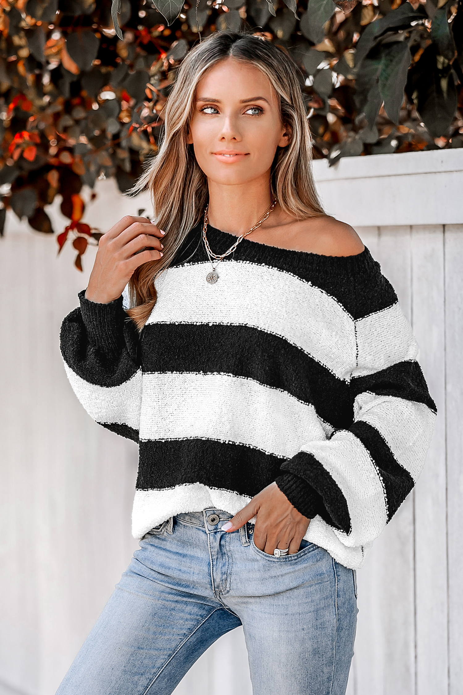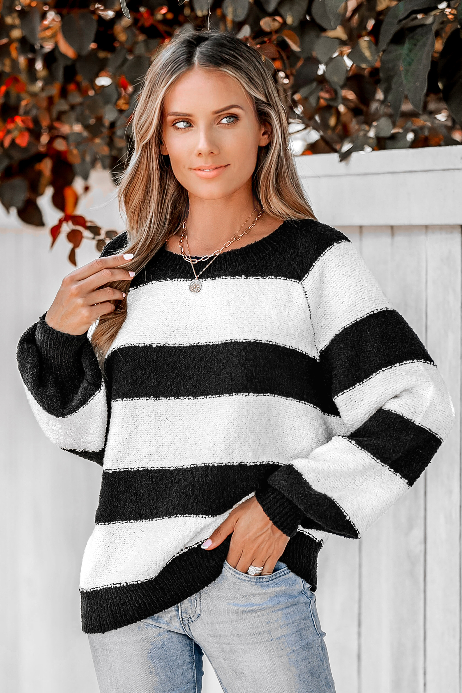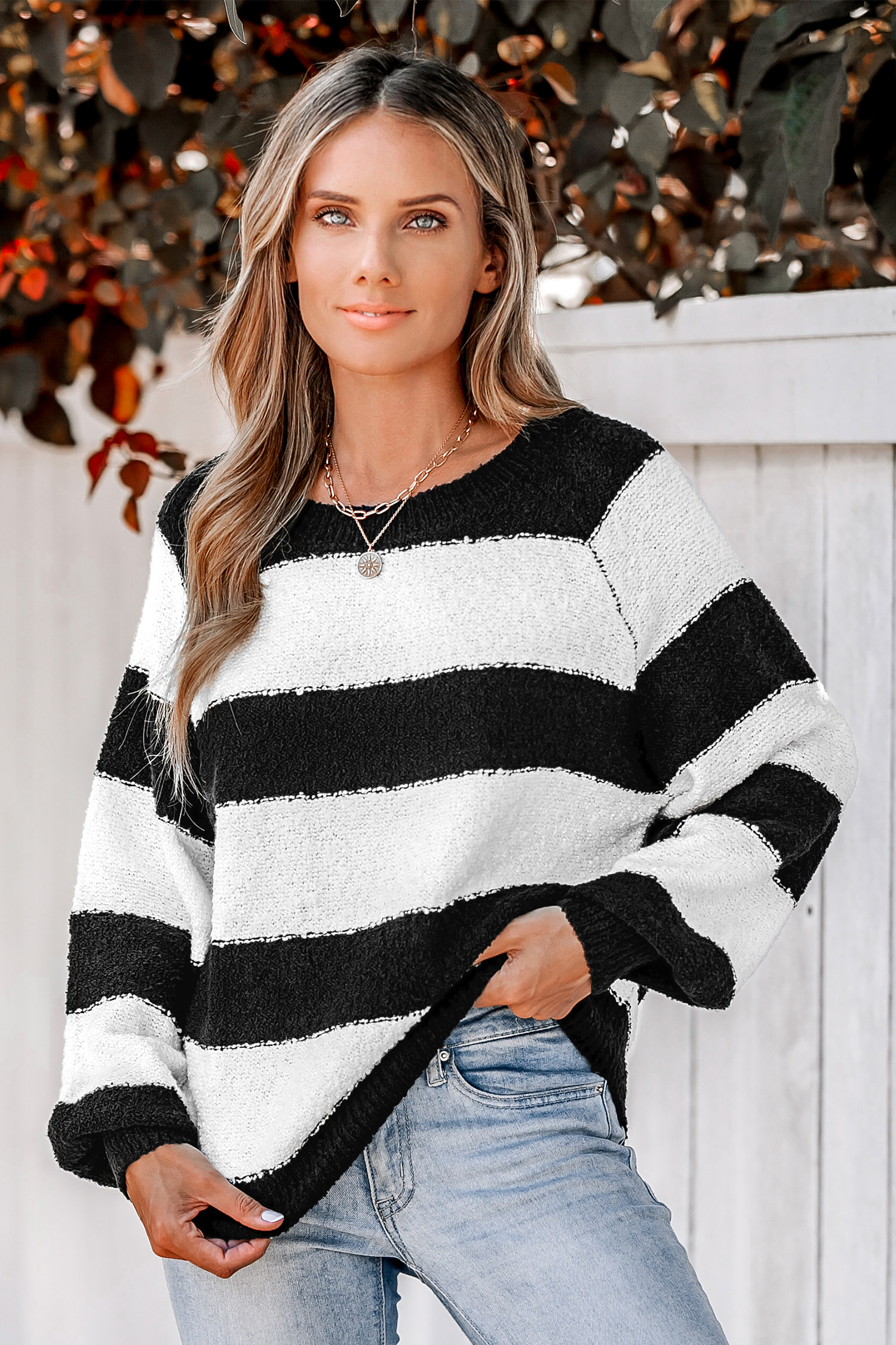 Gestreifter Pullover mit Raglanärmeln und Fuzzy-Strick