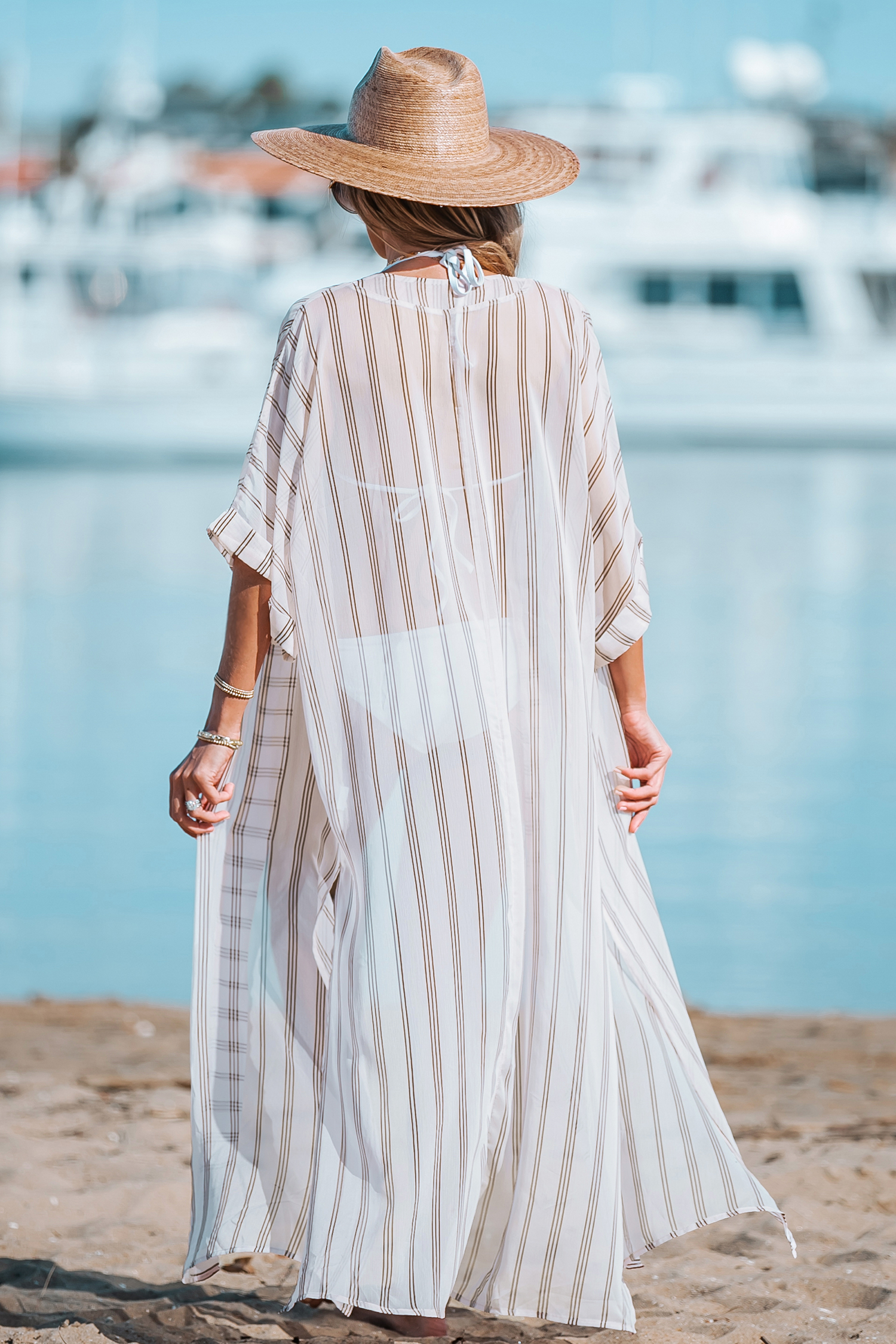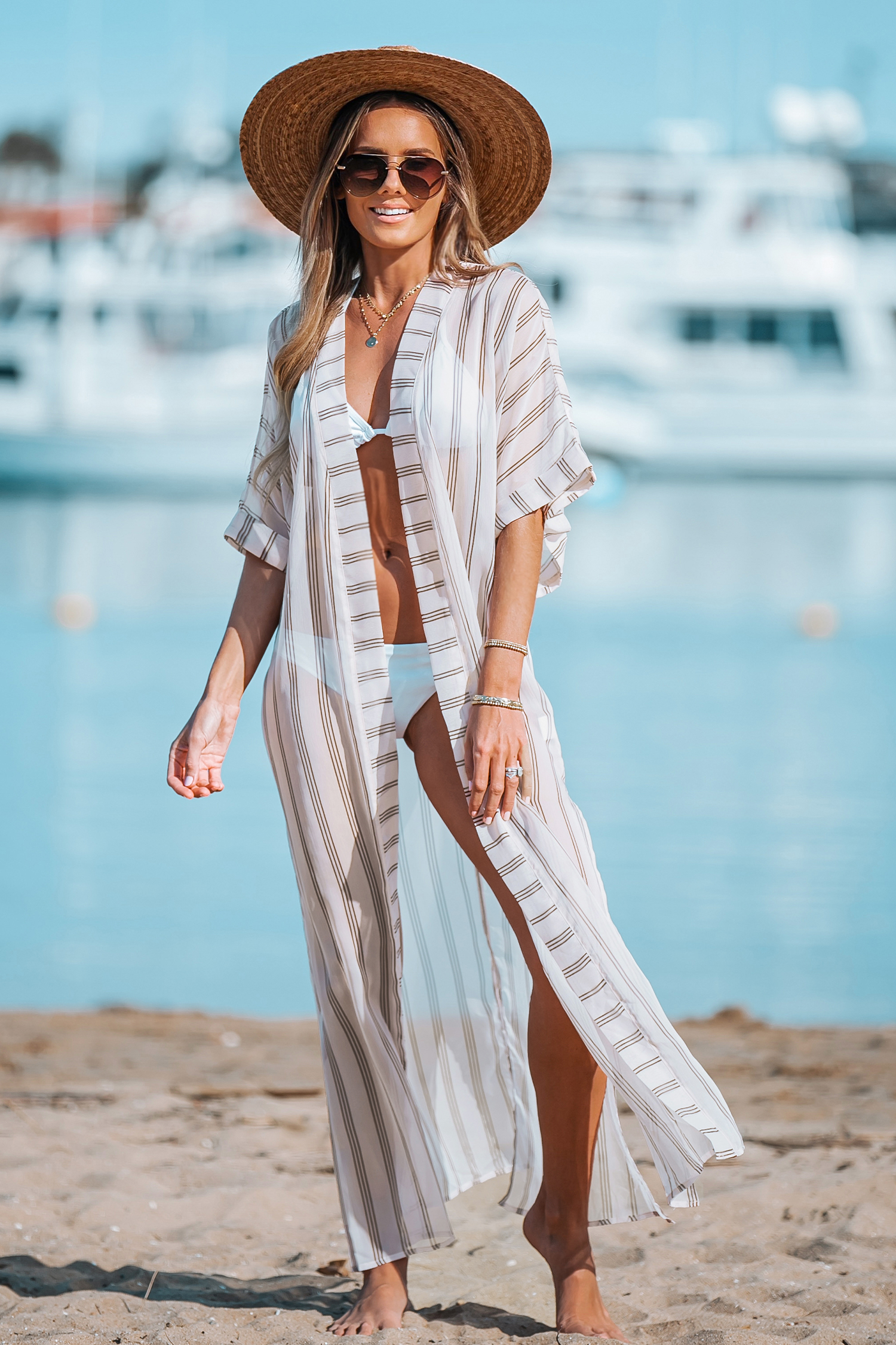 Gestreifter Staubwedel-Kimono mit offener Vorderseite