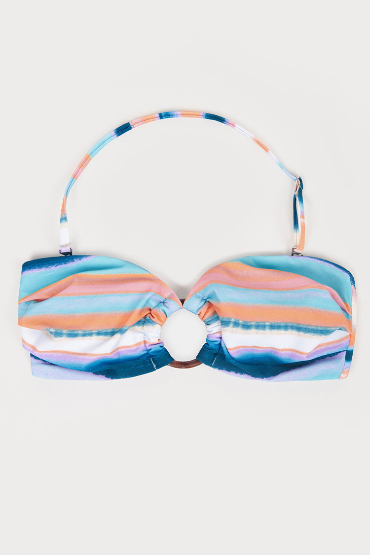 Gestreiftes Bandeau-Bikinioberteil mit O-Ring