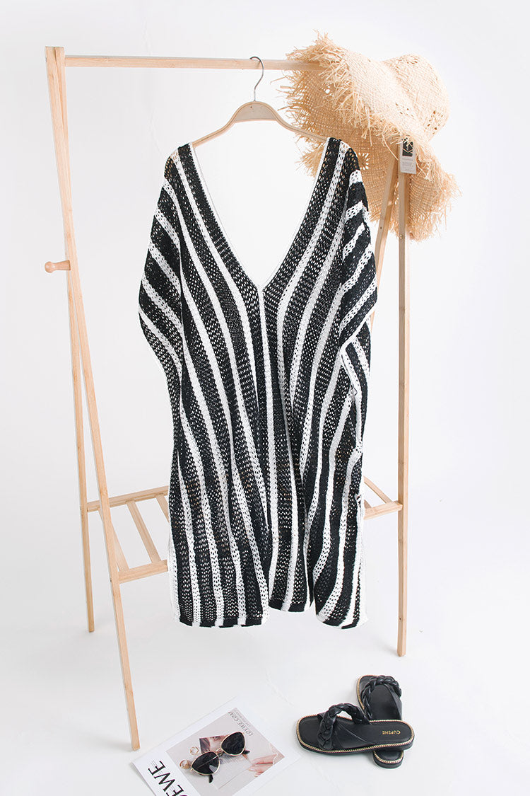 HomeGestreiftes Cover Up mit V-Ausschnitt
