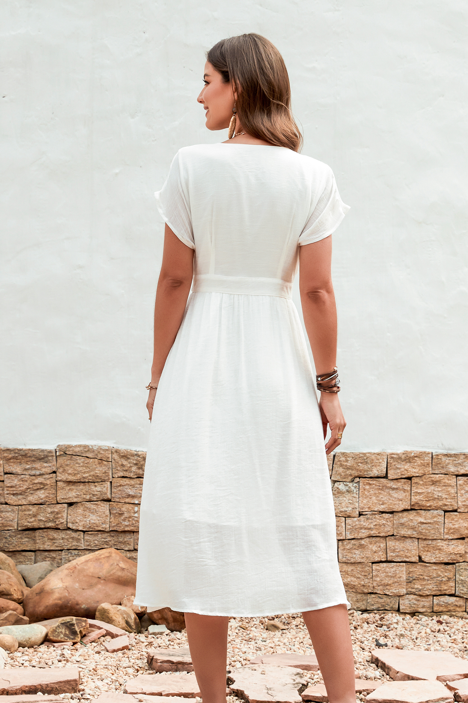 Gewebtes Maxikleid in A-Linie mit tiefem V-Ausschnitt